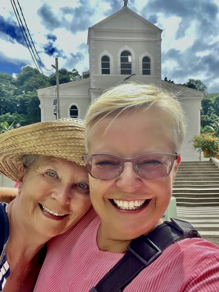 Soeben beschließen Marlene und ich, mit dem Bus nach Victoria und von dort zu Sir Michael Adams, dem Gauguin der Seychellen, zu fahren. Klaus und Janek besuchen stattdessen Baumärkte (Es liegt plötzlich eine fette, lange Gewindeschraube auf dem Deck und im Mast fehlt eine, aber nicht diese… 😳) und entfernen tausende Seepocken von den Bootsrümpfen, oder versuchen es zumindest. Wir sind dann mal schnell weg. Erstmal geht es ganz gesittet nach Victoria und da wir noch gut Zeit haben, bis der Anschlussbus kommt, stiefeln wir mal eben rüber zur nahe gelegenen Cathédrale Immaculée Conception.