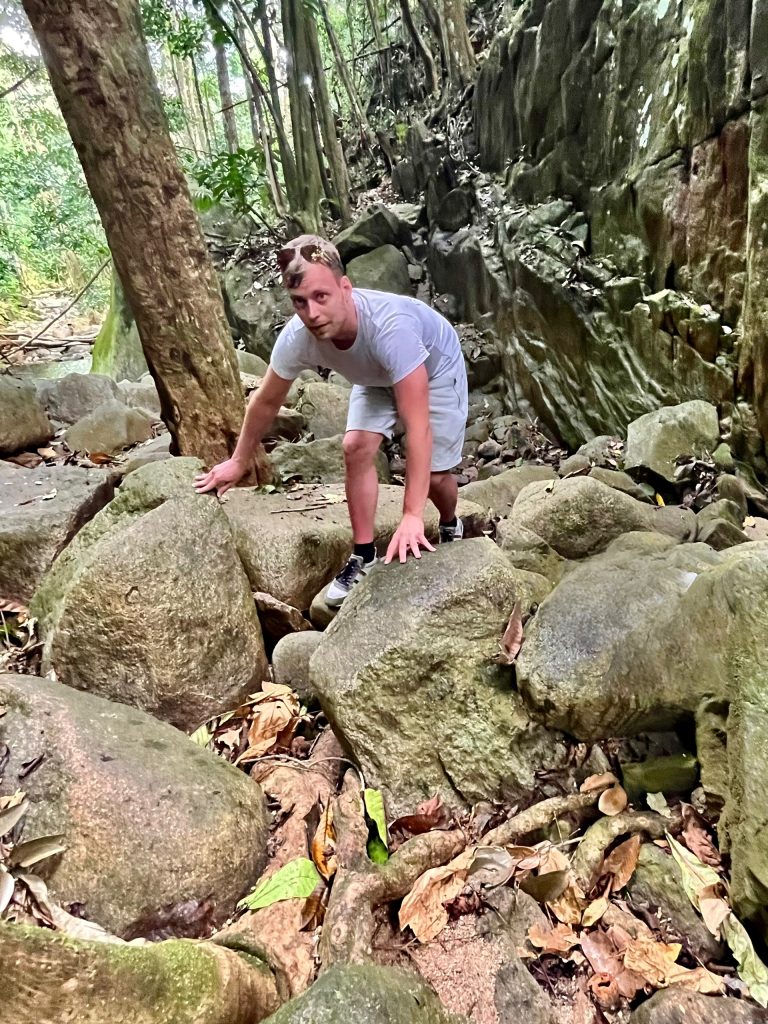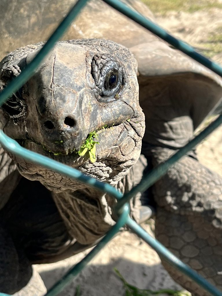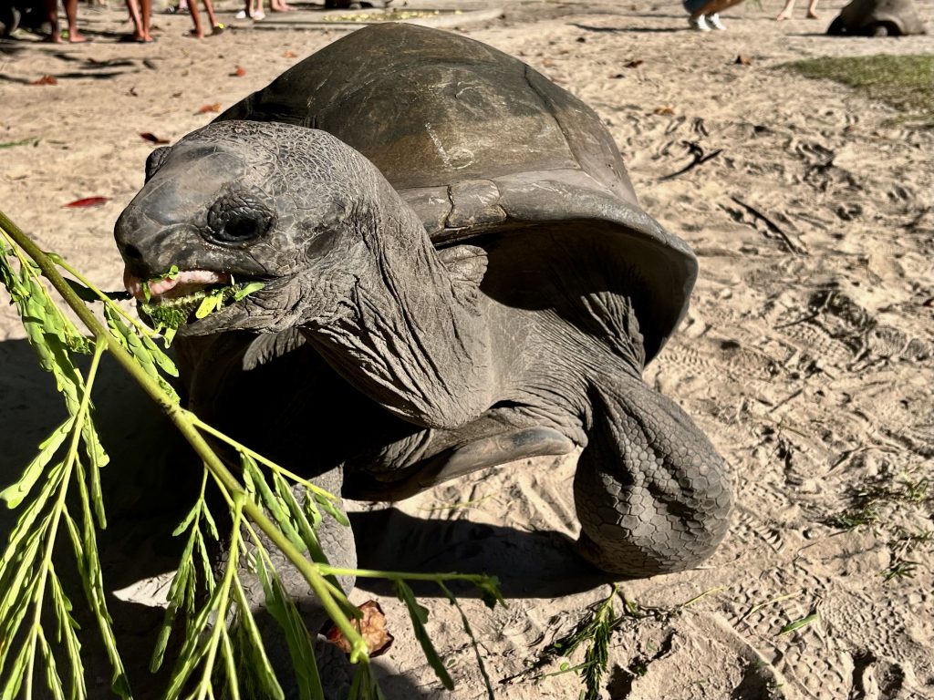 Im Auto meint Klaus, er wisse schon wo wir jetzt was essen könnten und fährt los. Doch unerwartet stehen wir plötzlich vor verschlossenen Toren. Ein Resort. Nein, DAS Resort. Das größte fünf Sterne Resort im Indischen Ozean, Constance Ephelia. DAS hatte Klaus sicher nicht vor! Aber wenn wir schonmal hier sind, können wir auch gleich fragen, ob wir zum Essen, bleiben dürfen… Wir dürfen, die Tore werden geöffnet. Erstmal nen ordentlichen Parkplatz suchen, dann kommt ein Hotelmanager auf uns zu und fährt uns kurzerhand per Golfcar zu einem der Restaurants. So schnell können wir gar nicht gucken. 👀 Na dann mal guten Appetit. Das wird heute teuer… Zurück zum Auto laufe wir zu Fuß und entdecken ein Riesenschildkrötengehege. Was für ein Wort!!!