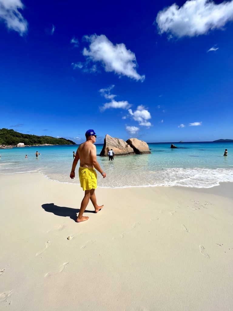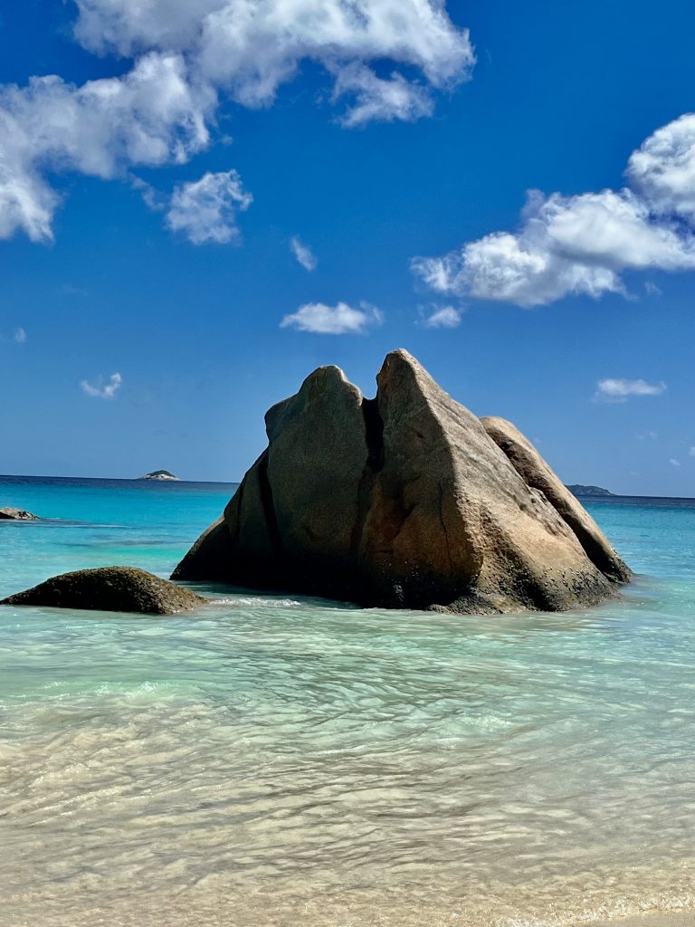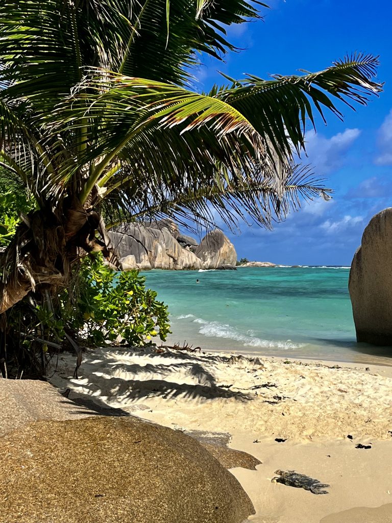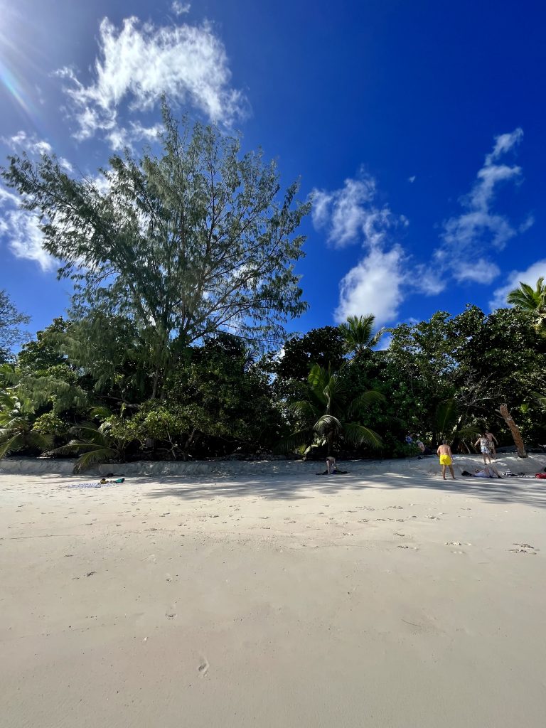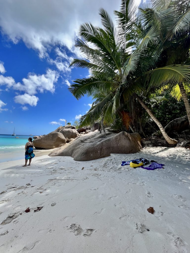 Nach gefühlten 10 Minuten plus 10 Minuten Vortrag über die Coco de Mer geht es weiter zum betitelt, schönsten Strand der Welt?! Es geht zur Anse Lazio. Dort können wir baden, schwimmen und schnorcheln, sofern wir Ausrüstung dabei haben. In einer Stunde geht es aber wieder zurück zum Boot und weiter nach La Digue. Okay, da ist aber nicht viel möglich! Duschen sind im gegenüber liegenden Restaurant, ein Verzehr dort ist aber die Voraussetzung für ihre Nutzung. Hm 🤔.