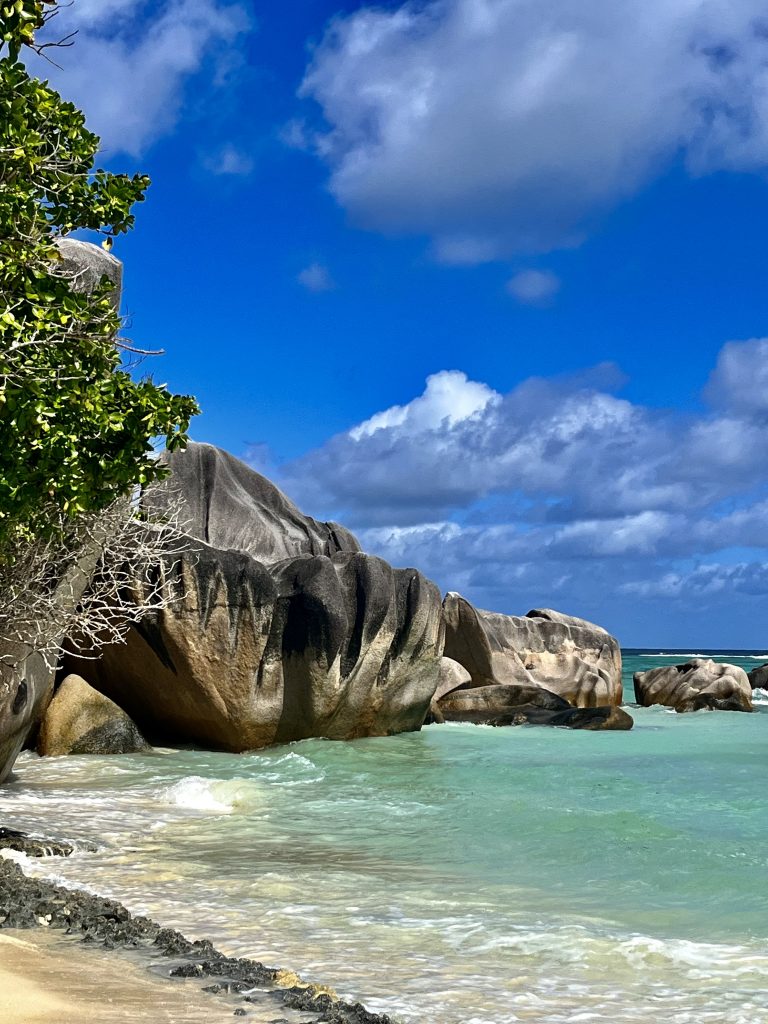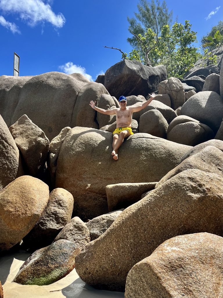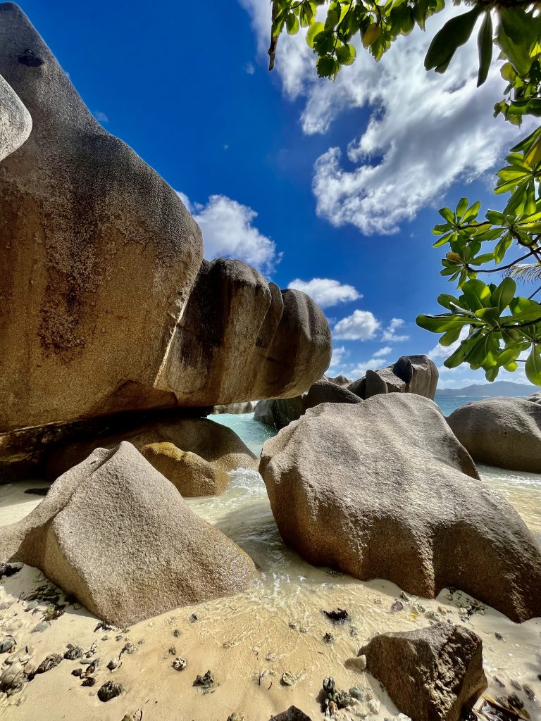 Wir nähern uns dem Strand mit seinen wirklich unglaublichen Granitsteinen. Super toll!!!