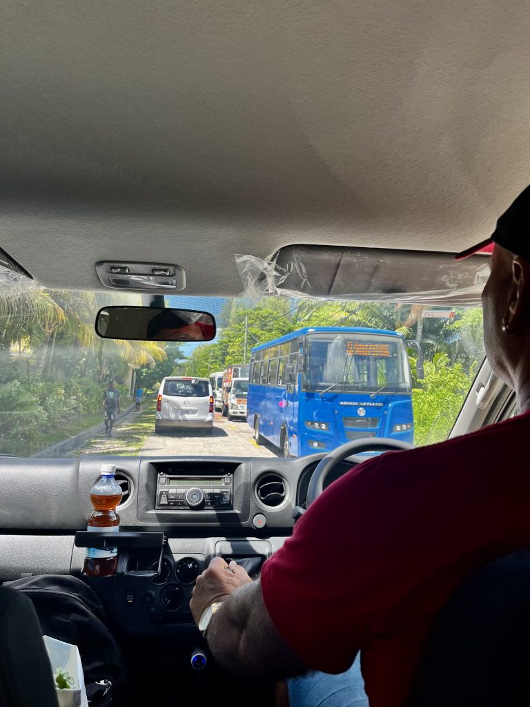 Es ist vollbracht, nun ist er 30❣️Zur Feier des Tages, ist heute ein organisierter Ausflug nach Praslin und La Digue geplant. Zwei Inseln, die wegen ihrer Strände und Steinformationen Berühmtheit erlangt haben und in Filmen und Werbung als Kulisse dienten. (Cast Away, Emmanuelle, Bacardi Rum Werbung,…) Dafür müssen wir aber sehr früh aufstehen und Bescherung, Ständchen und Küsschen noch im Halbdunkel über die Bühne bringen 🎊🎁🎂🎉💋. Um 6:30 Uhr sollen wir geschniegelt und gestriegelt vor Marlenes Resort stehen und auf unser Transfertaxi warten.