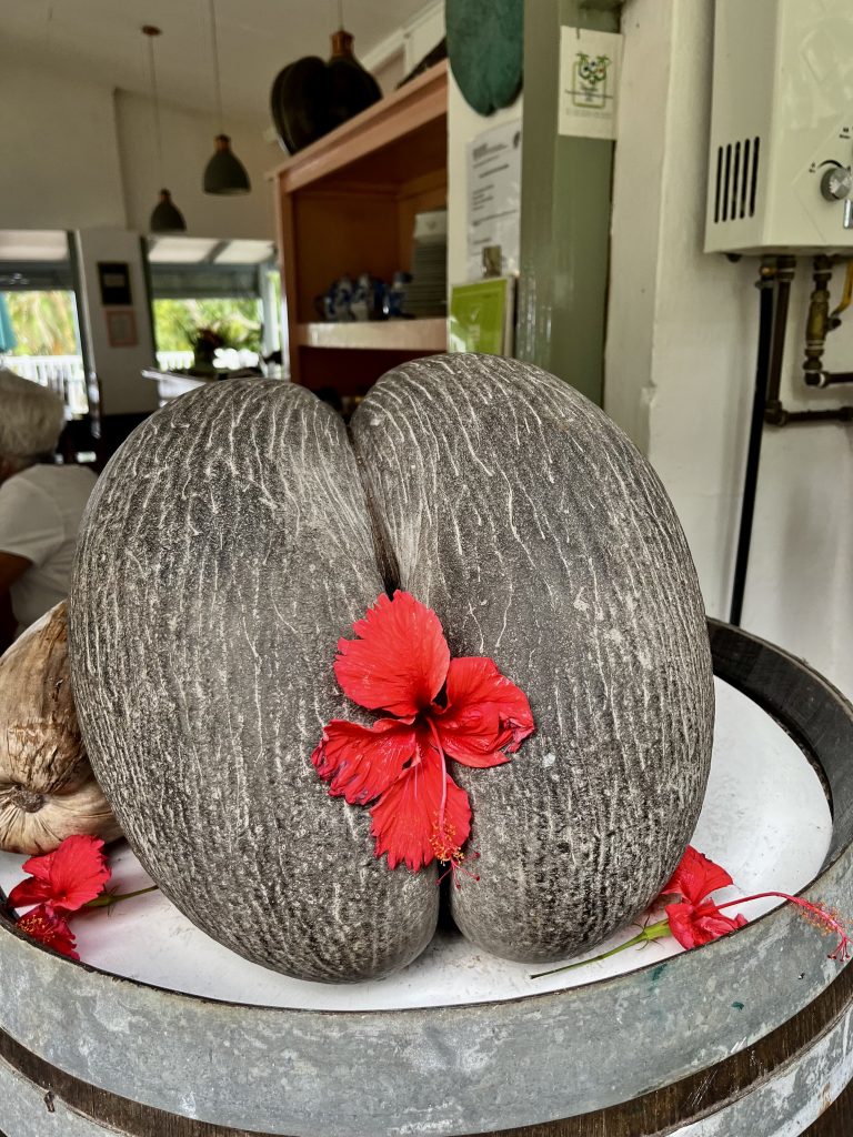 Zum krönenden Abschluss gibt es noch Streicheleinheiten und richtig tolle Coco de Mer Palmen samt Gehänge.