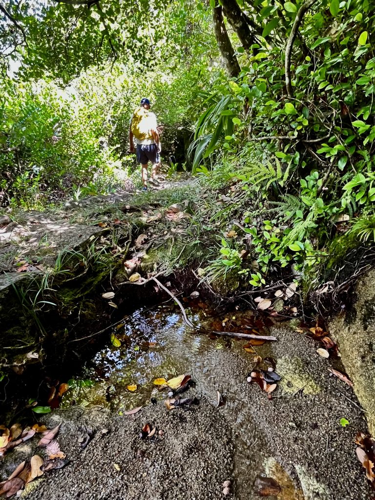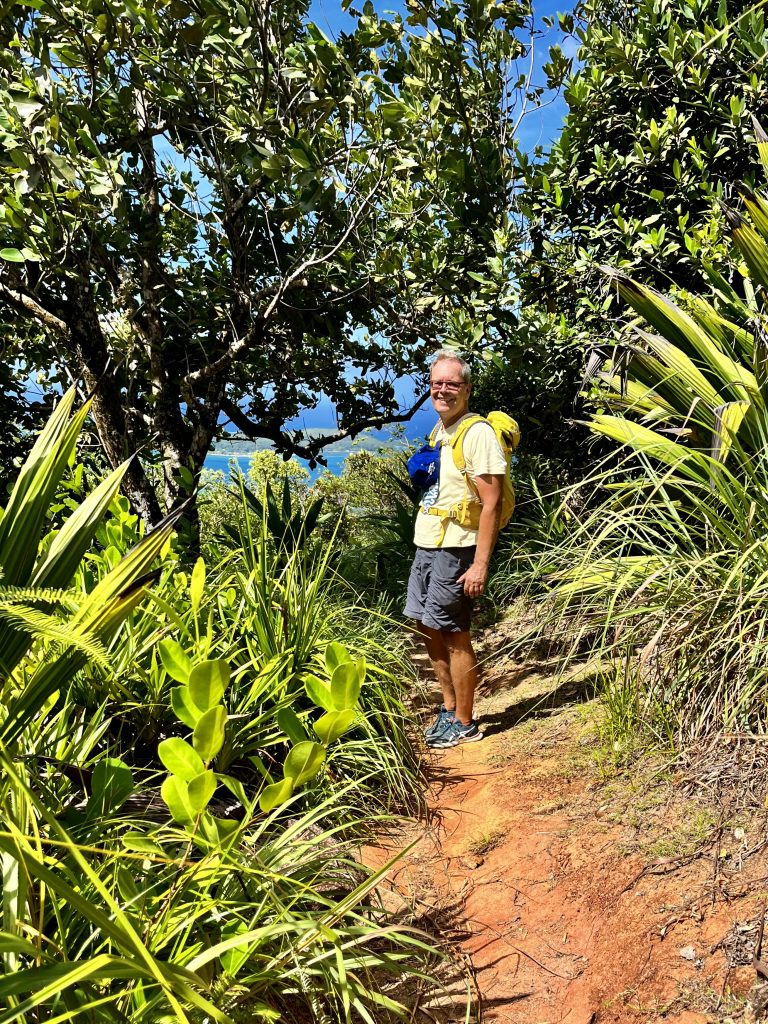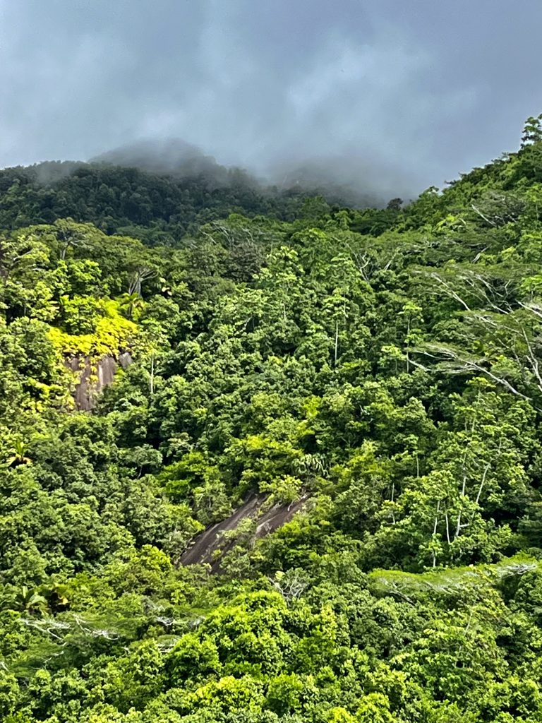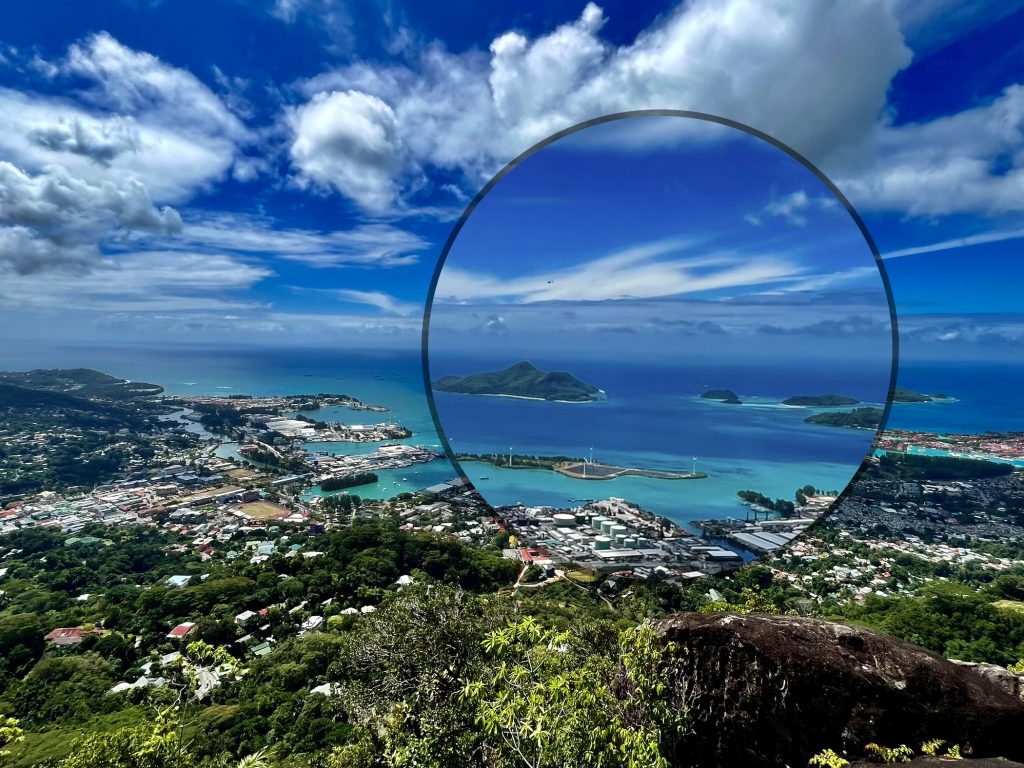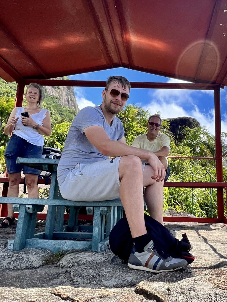 Er verspricht uns abermals einen spektakulären Ausblick über Mahé, bis hin zum Marinenationalpark. Ein kurzer Weg, mit knackigem Anstieg liegt vor uns. Aber schon der Startpunkt offeriert uns einen tollen Blick.