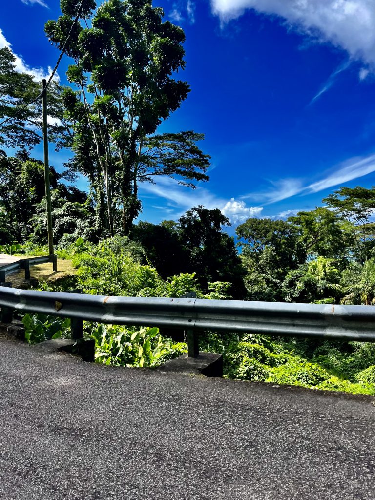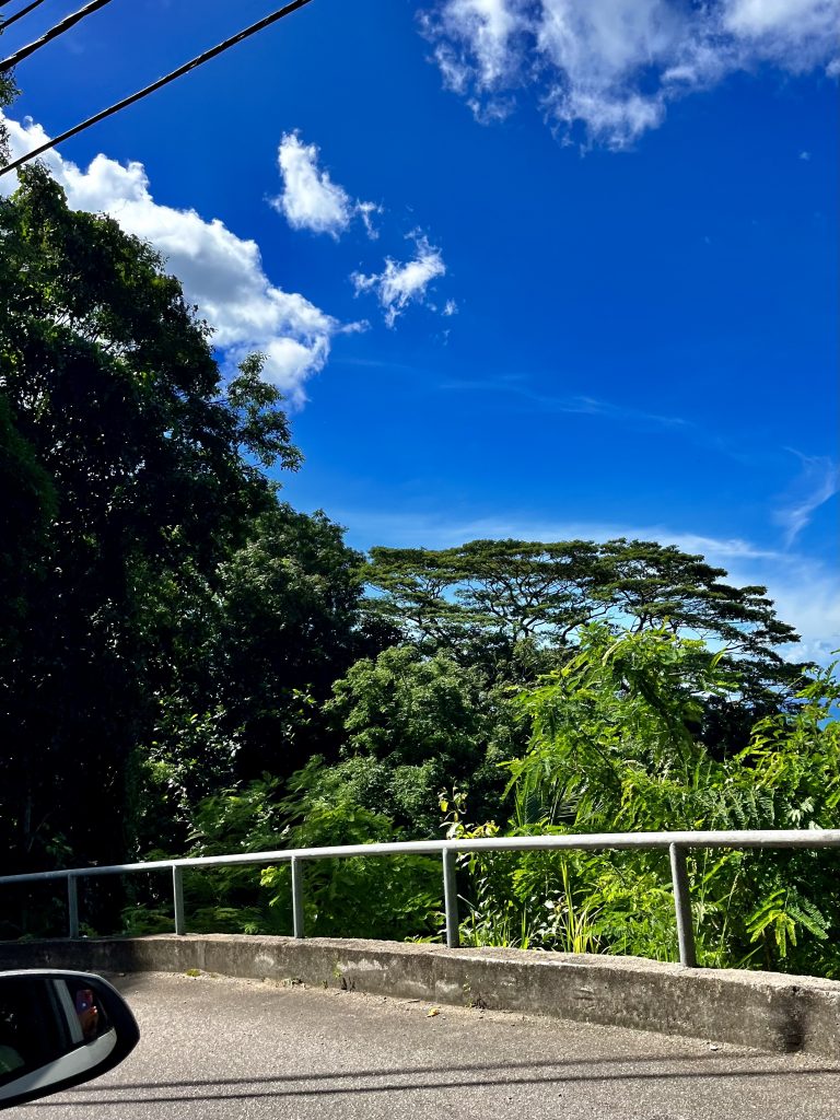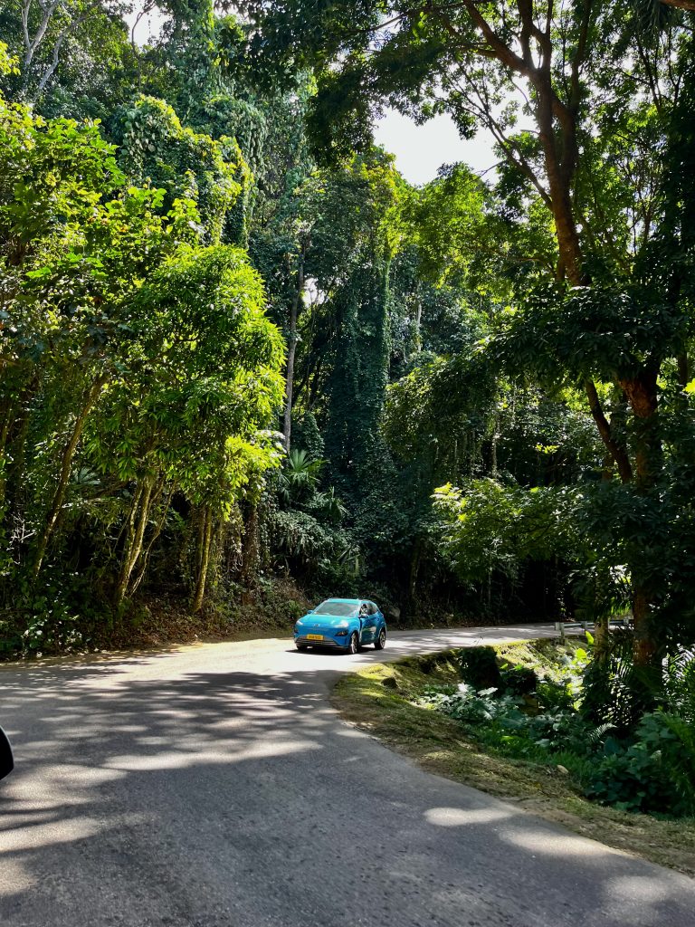 Das war übrigens wieder ein Abenteuer mit dem kleinen Leihwagenquieker zum Startplatz zu kommen. Ein Steilanstieg, der sich gewaschen hat!! Marlene und ich sitzen fast immer hinten und quieken auch, oder halten die Luft an. Dann steht da noch ein Schild, man dürfe den Trail nur mit gültigem Ticket betreten. Ticketverkauf 100 Meter links. 😳 Also links ist nichts und den Berg runter laufen wir bestimmt nicht!! Also geht’s ohne Ticket weiter. Große Wurzeltreppen müssen nun überwunden werden. Ist aber zu schaffen! Man kann sich ja festhalten…