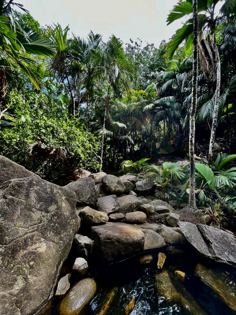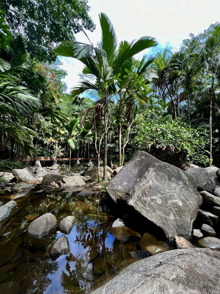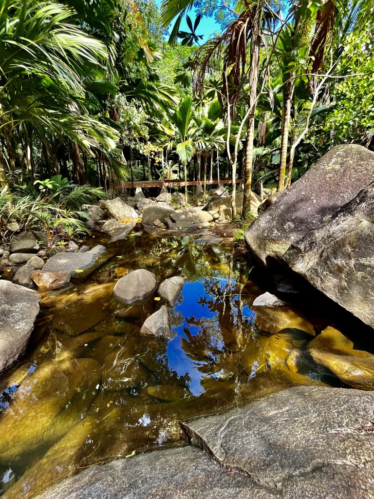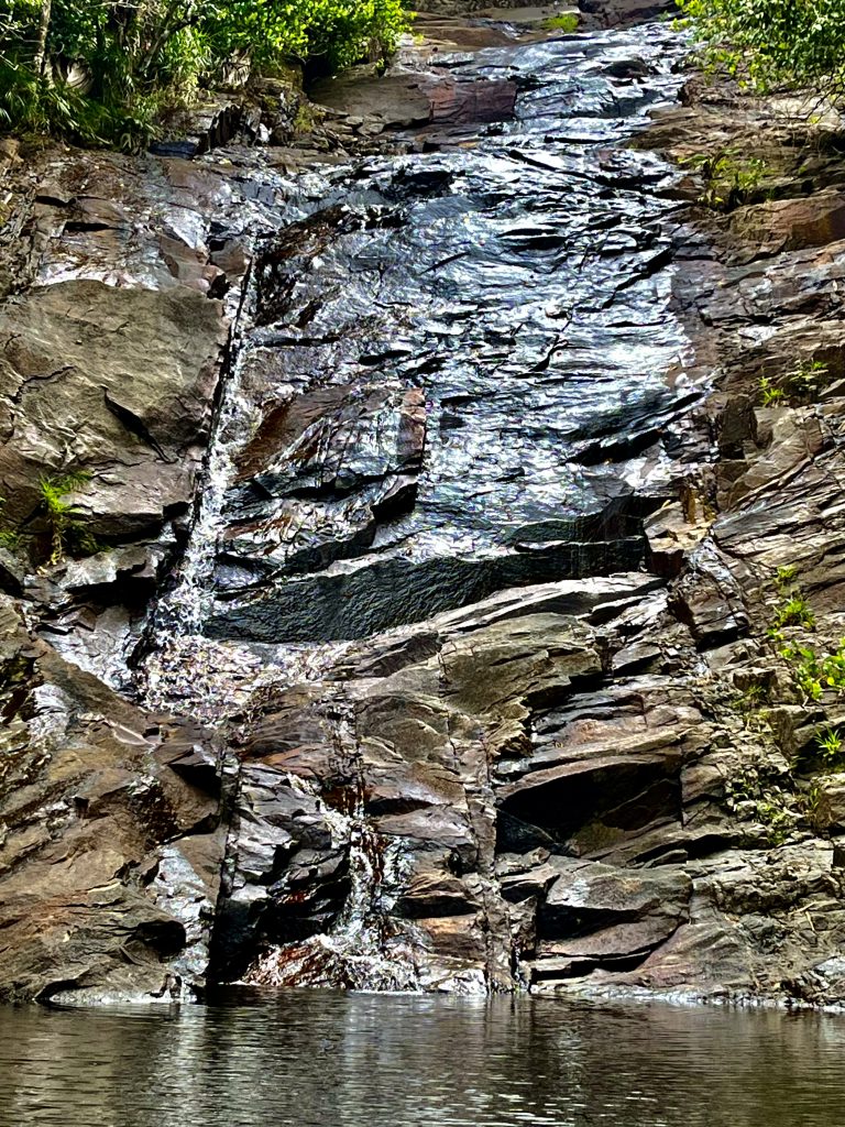 Bloß nicht im Boot verkriechen aber auch keinen Gewaltmarsch! Sowas dazwischen wäre schön. Wir haben heute ja noch das Auto. Morgen Vormittag geben wir es dann wieder ab und pausieren erst einmal. Es koscht halt alles … Jepp, wir fahren zu einem Wasserfall, zum Cassedent Waterfall. Da können wir fast bis vor fahren und dann noch läppische 100 Meter hinlaufen, um dort zu baden 🤩.