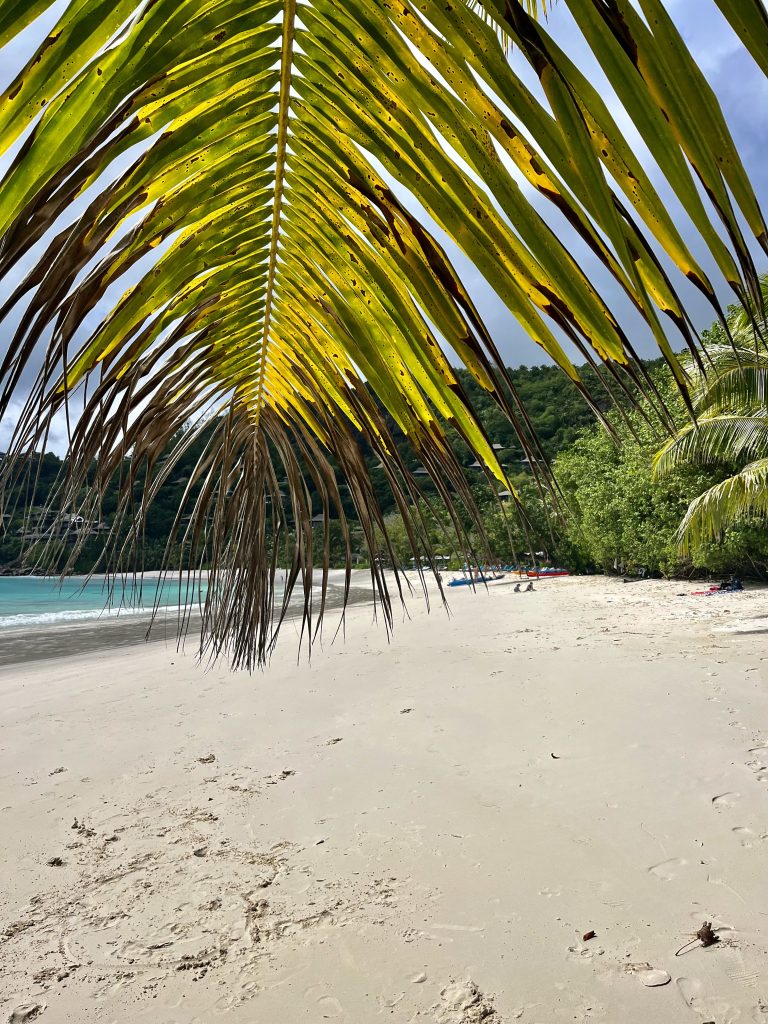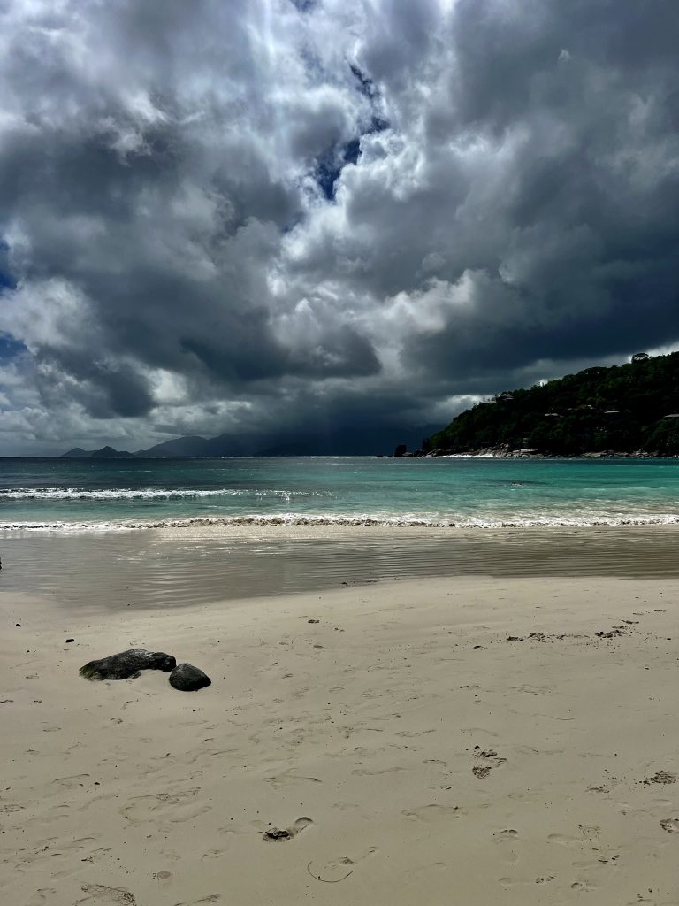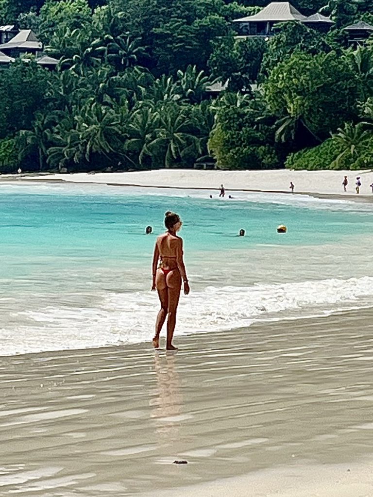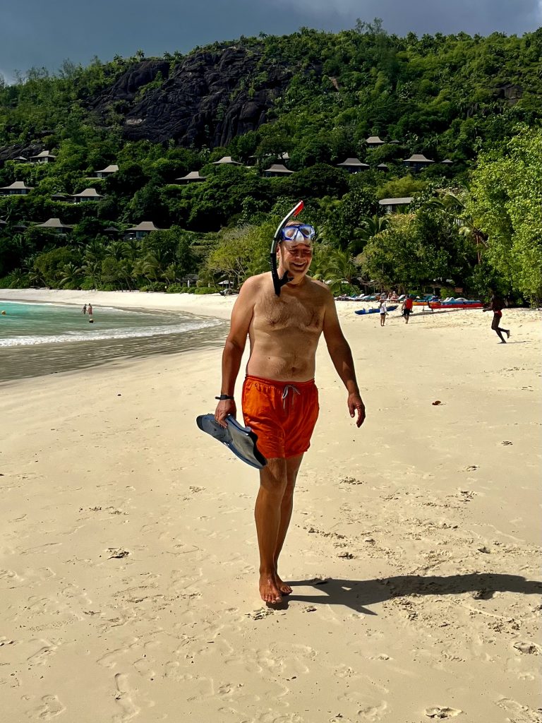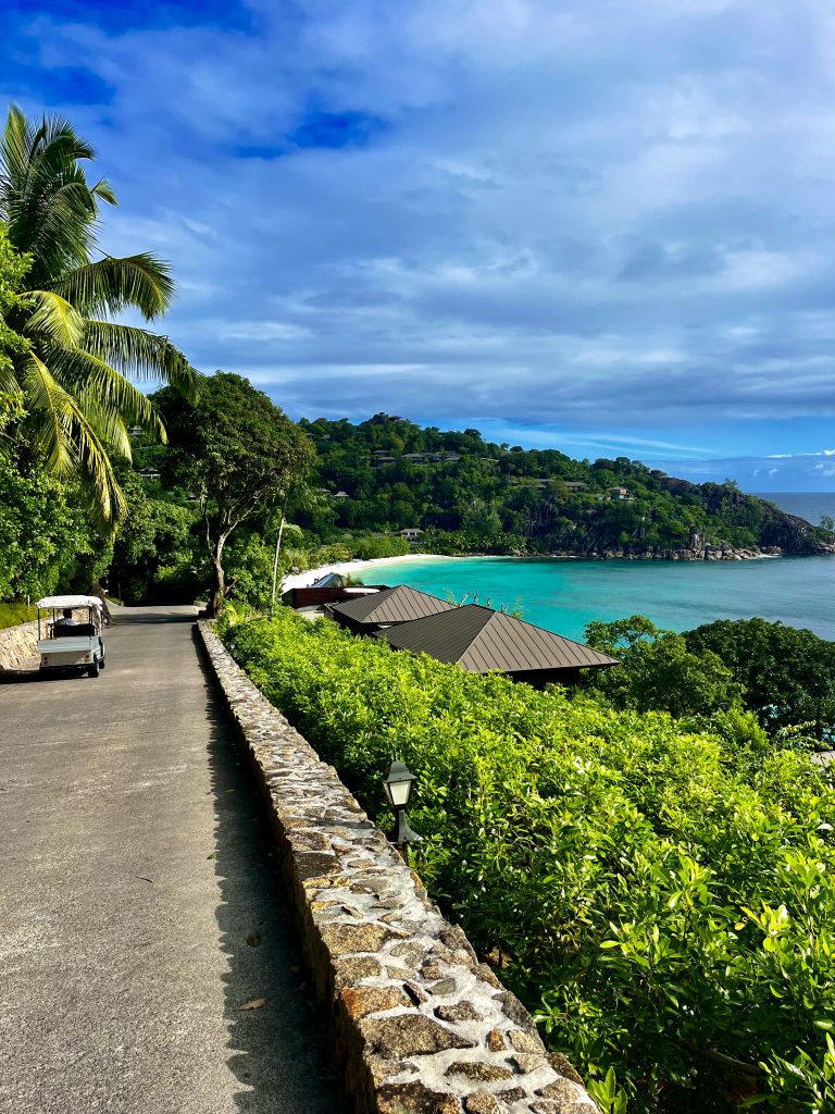 Nach dem tollen Tipp von Mitschwiegereltern Gabi und Frieder, wollen wir heute zur Kleinen Bucht. Dafür fahren wir wieder auf die Westseite der Insel und versuchen zweimal vergebens ins Kempinski Four Seasons reinzukommen, bis uns ein netter Herr verklickert, dass wir zum Four Seasons Resort müssen. Wir suchen weiter und landen beim Four Seasons Wasserwerk und werden wieder weitergeschickt. 🫣 Endlich beim richtigen Four Seasons Resort angekommen, lässt man sich registrieren, bekommt ein Armbändchen und darf dann durch die Hotelanlage runter zum Strand wandeln. Wobei wandeln es nicht ganz trifft, denn es geht recht steil nach unten, allerdings auf einer gut geteerten Straße, durch schön angelegtes Gelände.
