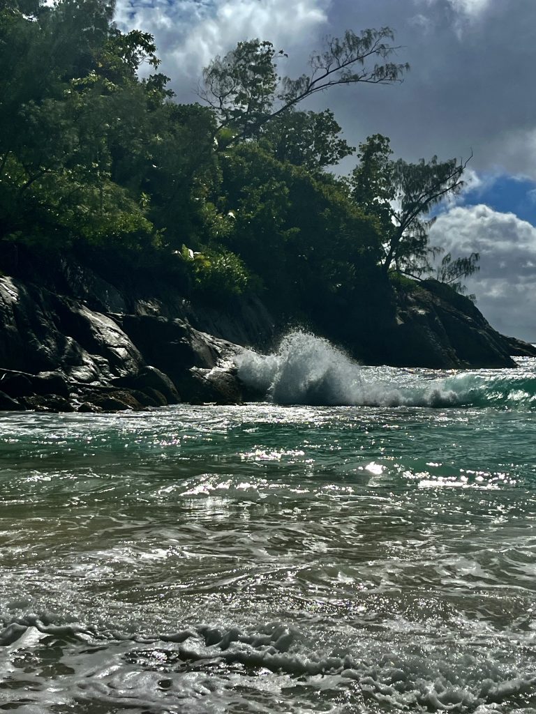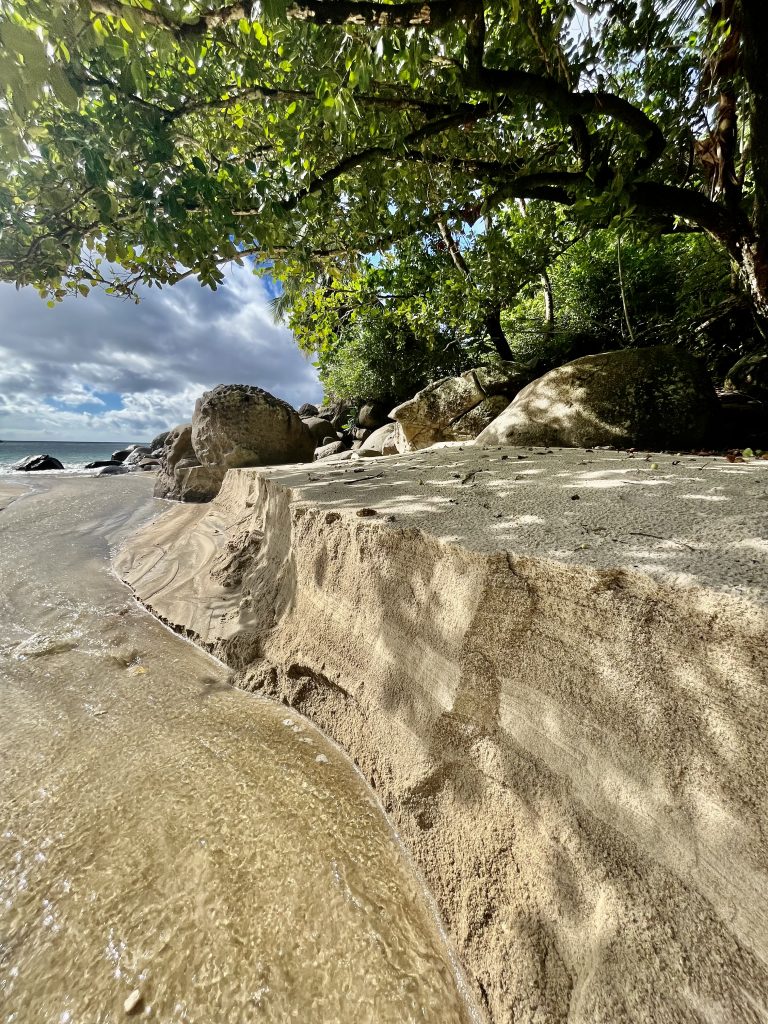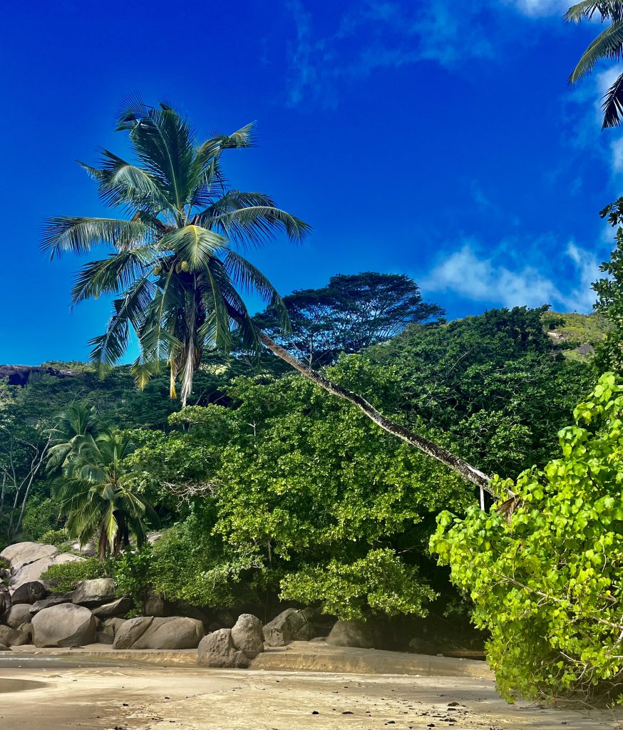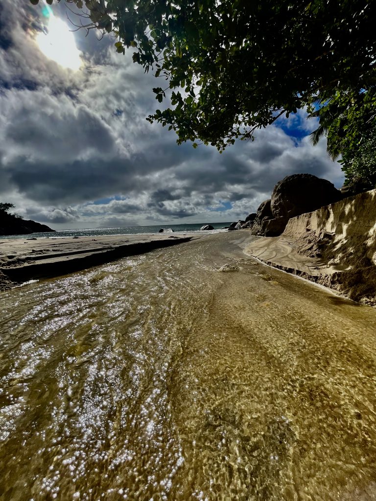 Doch wir haben GlĂŒck, der Himmel reiĂt auf und der Regen hat ein Ende. Da ist sie dann auch schon zu sehen, die Anse Major.