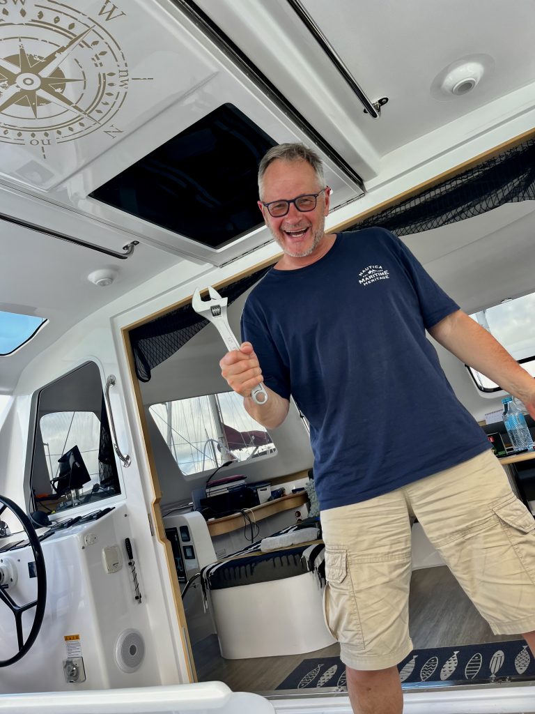 Doch etwas spĂ€ter hĂ€lt sie nichts mehr und mit Werkzeug bewaffnet, gehtâs zur Reparatur des gebrochenen Furlers.