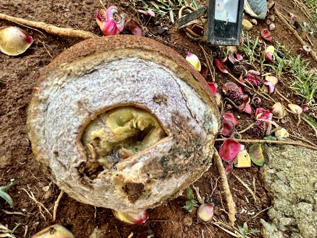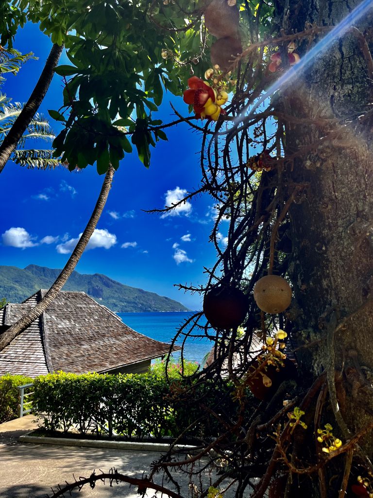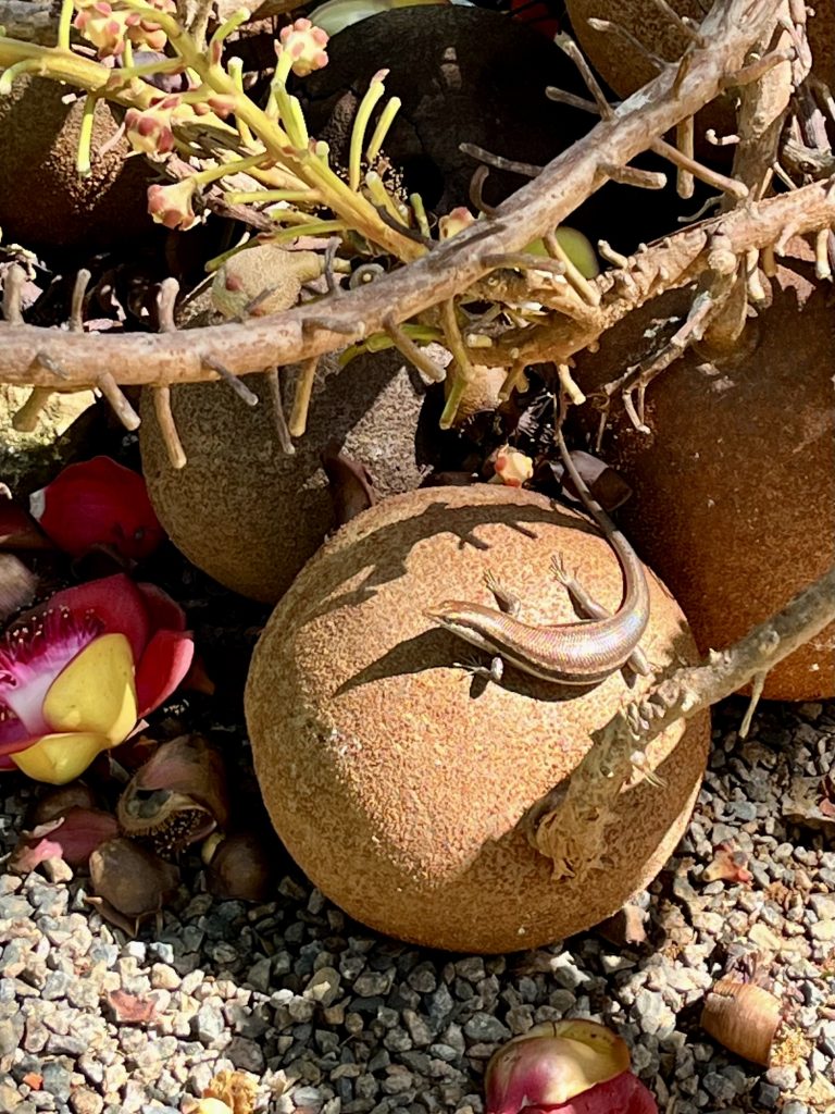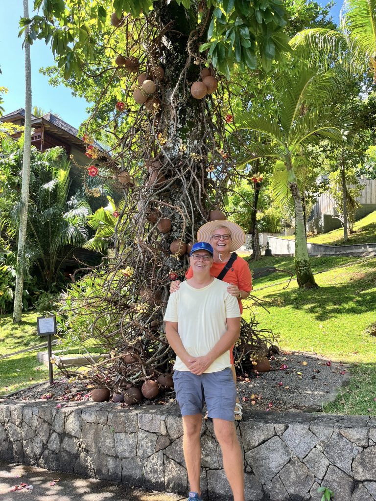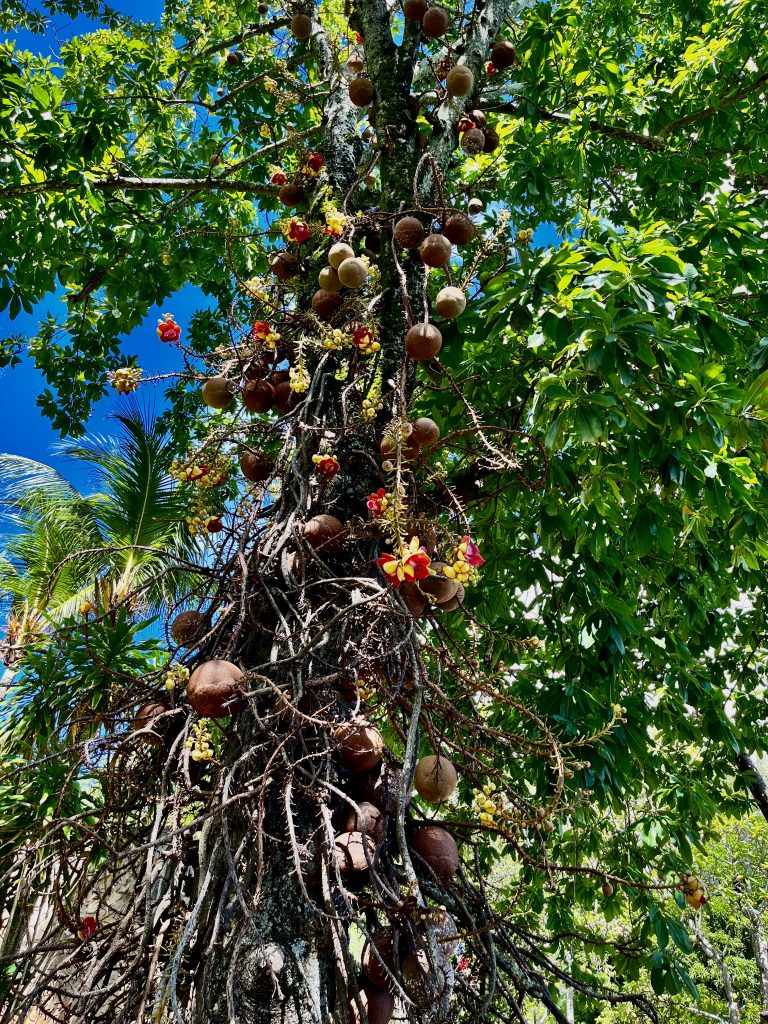 Ich würde ja schon gerne mal den Kanonenkugelbaum besichtigen. Allahopp! Wir fahren zum Hilton Nordholm Resort, dort soll es ihn geben. Das eiserne Tor dieser wunderschönen Anlage öffnet sich, wir fahren hinein, parken und lassen uns von der Security den Baum, nein, die drei Bäume zeigen. Na die sind ja beeindruckend❗️