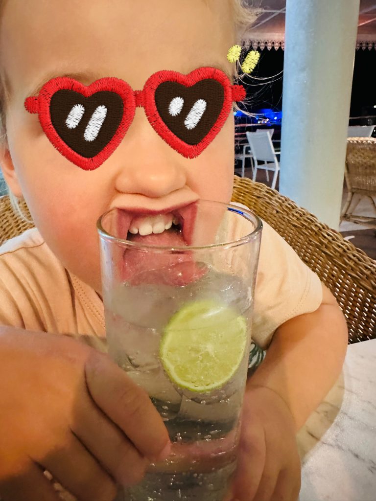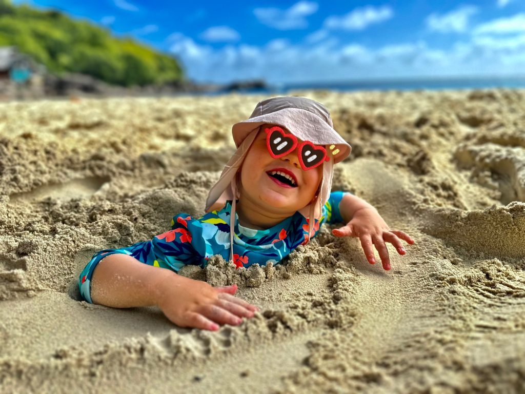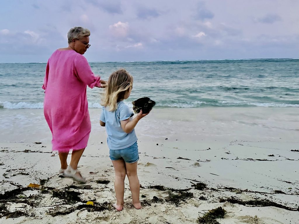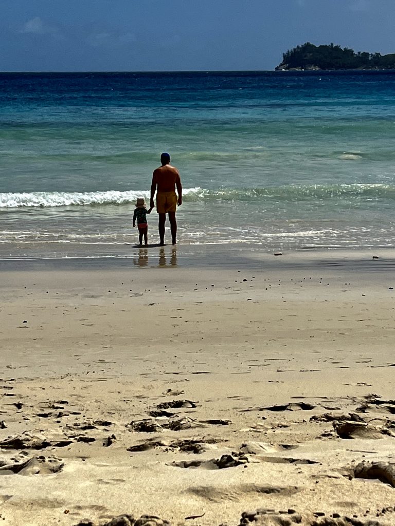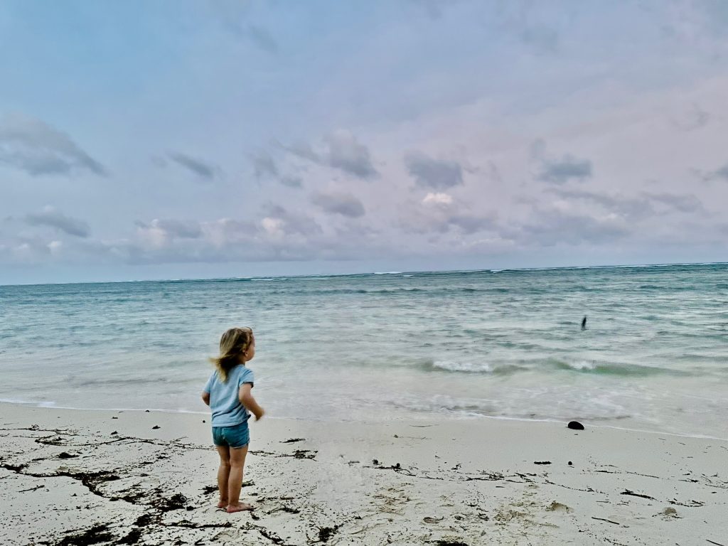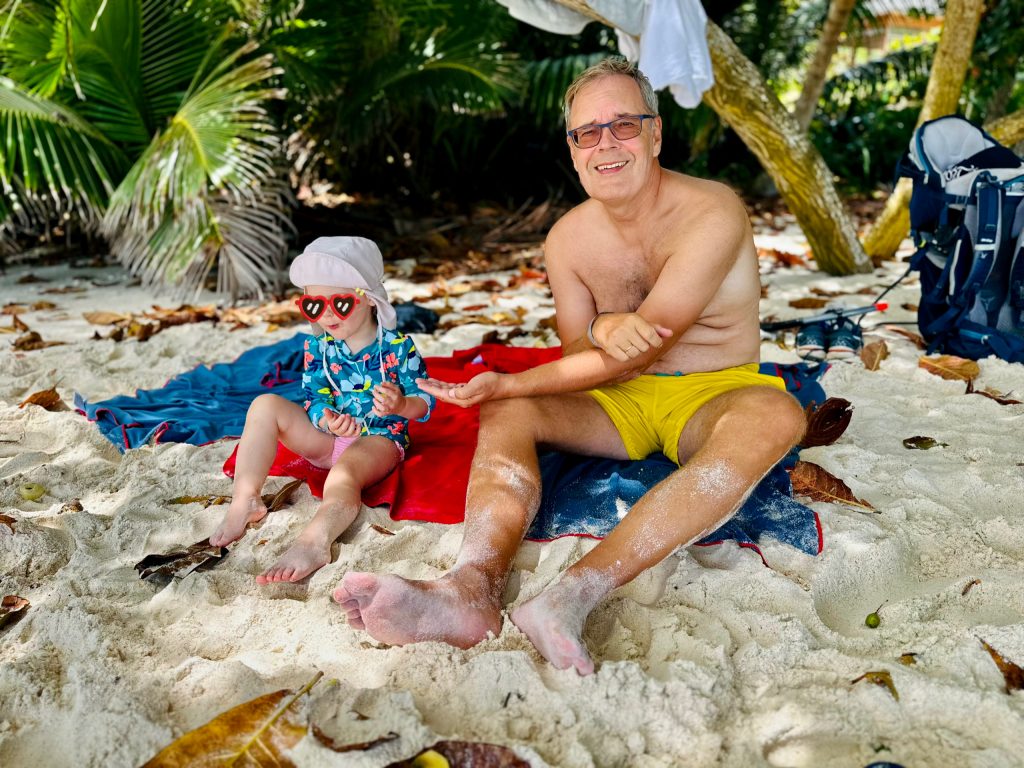 Ach, ist das schön hier, O-Ton Alva. 🥰 Und bemerkenswert, mit was für einer Ausdauer Muscheln, Palmenfrüchte, Stöckchen und Steine gesammelt werden, um sie ins Meer zu schmeißen. Es schummert schon und die Eltern werden zappelig, doch Alva kann gar nicht genug bekommen… Es ist aber auch wirklich schön hier❣️