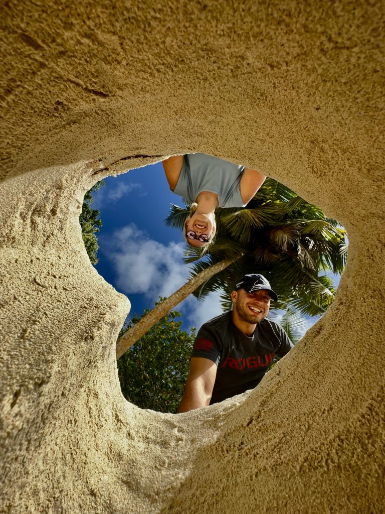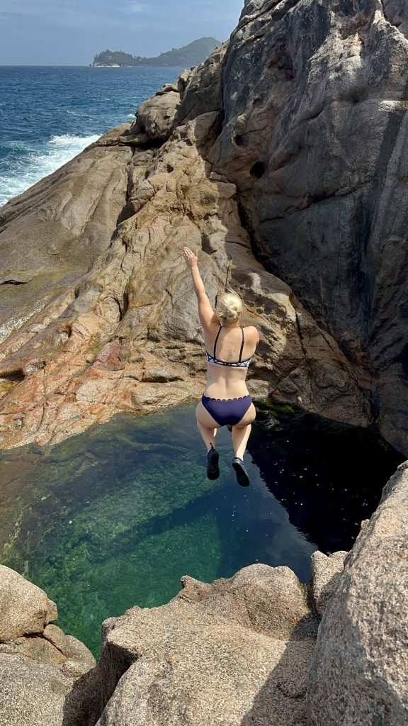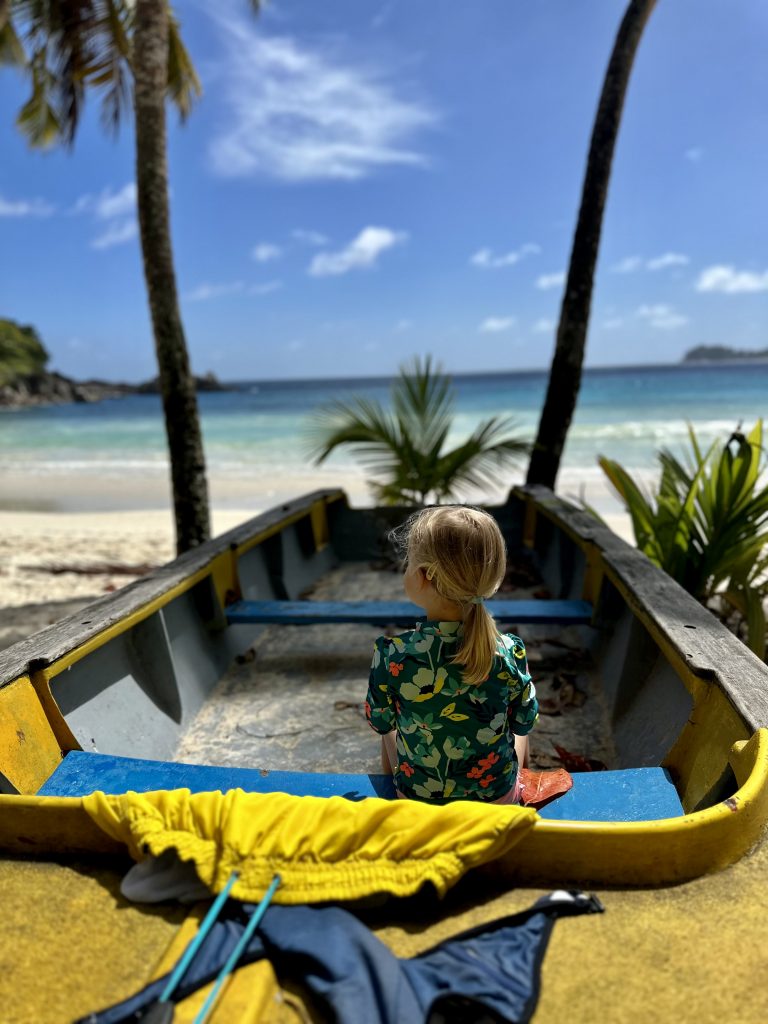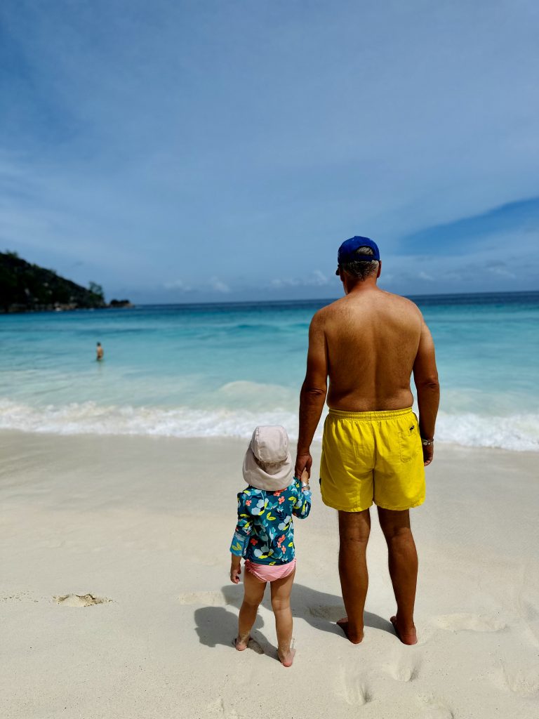 Ein herausragendes Stranderlebnis, ist die Anse Takamaka. Hier werden wir uns mit Alva die Zeit vertreiben, während Larissa und Norman den nahe gelegenen Rockpool in Angriff nehmen werden. Auch hier die Frage, WER wird springen? Wir haben jetzt schon soo viel über den Felsenpool gesprochen, dass Larissa schon nervös ist und Norman ganz still, was eher selten der Fall ist. 🤭 Sie machen sich auf den Weg, Klaus zeigt ihnen den Einstieg. Wir kapern den Strand.