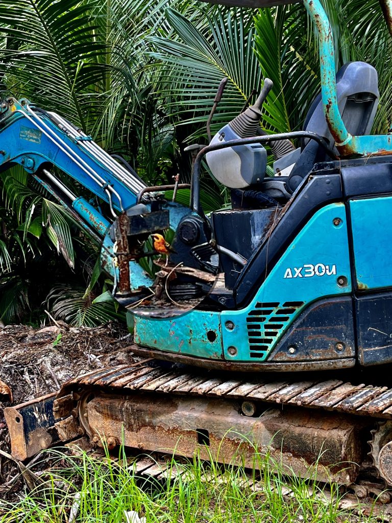 Mal auf dem ausrangierten Bagger, mal im Palmengrün.