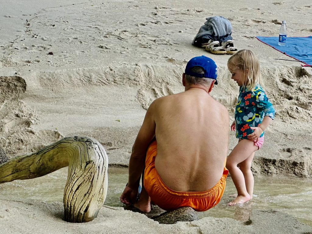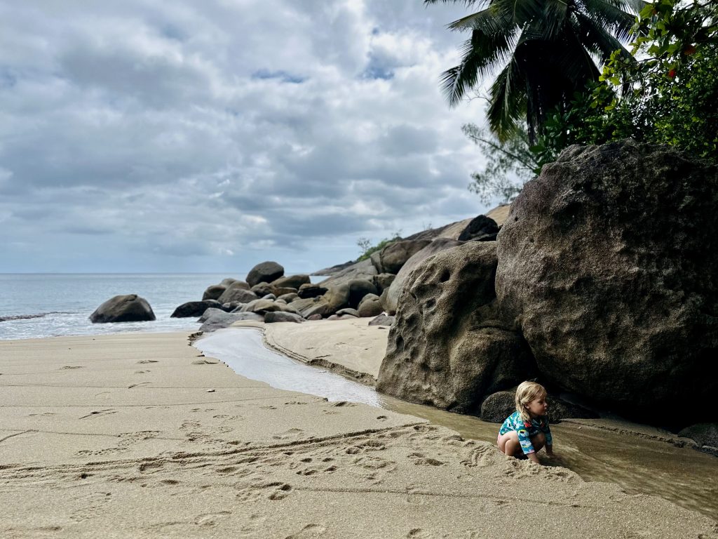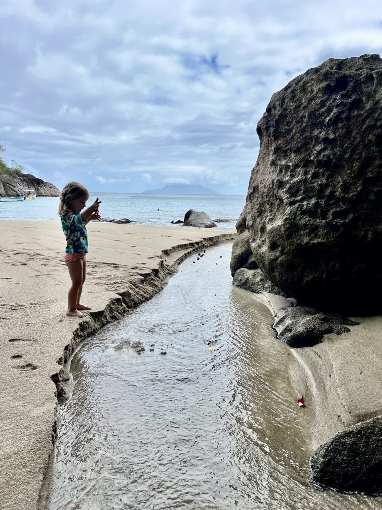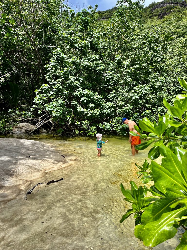 Der Süßwasserstrom, den es seit dem starken Regen hier gibt, ist super geeignet um darin zu spielen und zu baden.