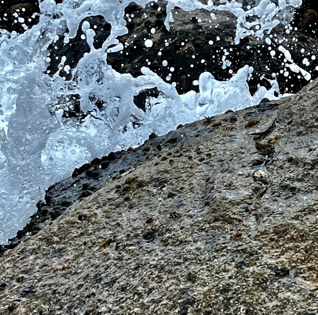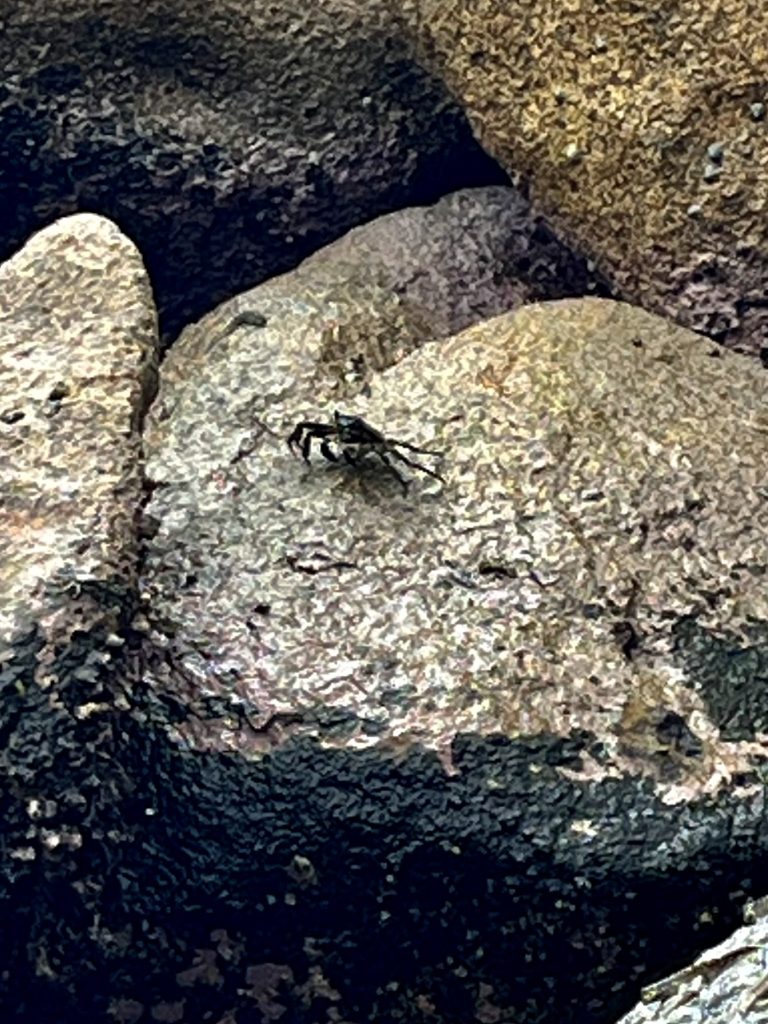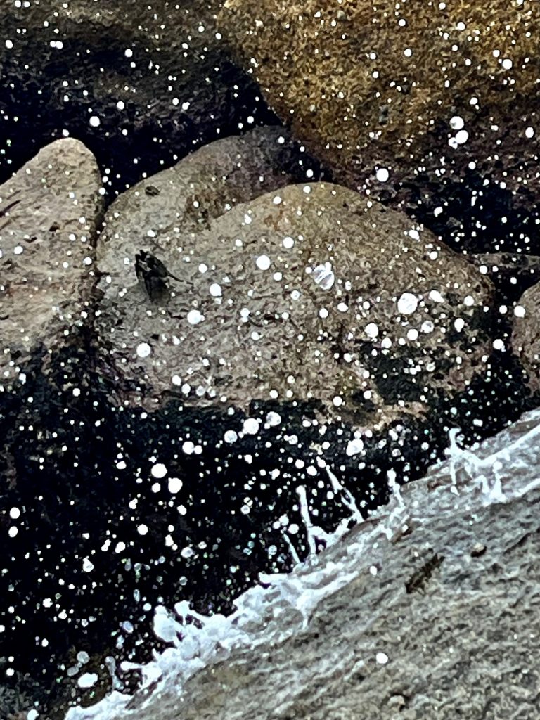 Auf den Felsen wird’s lebendig. Unzählige Krabben und Felsenspringer tümmeln sich.