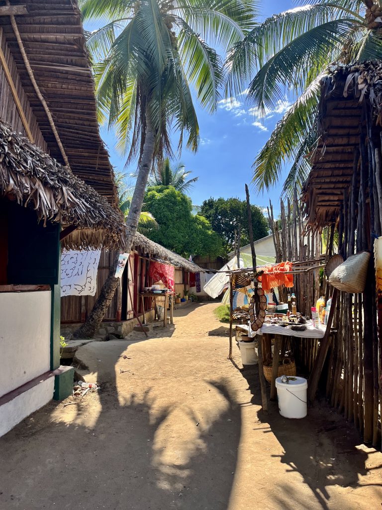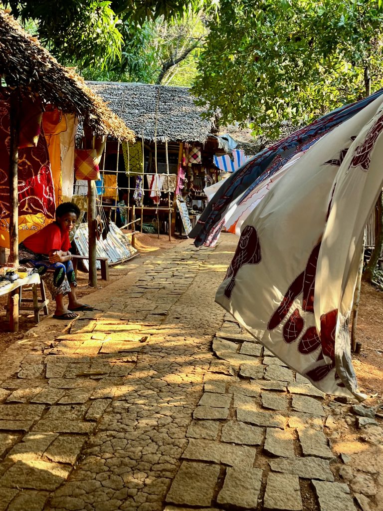 Viele Meter Wäscheleinen mit zig bestickten Tischdecken, Holzschnitzereien, T-Shirts, Tücher, Kleider, Hüte, Kappen, dicke Bündel Vanilleschoten, Öle und Tinkturen… Das Angebot wiederholt sich stark, ist aber wirklich schön anzusehen. Leider fehlen die Käufer.