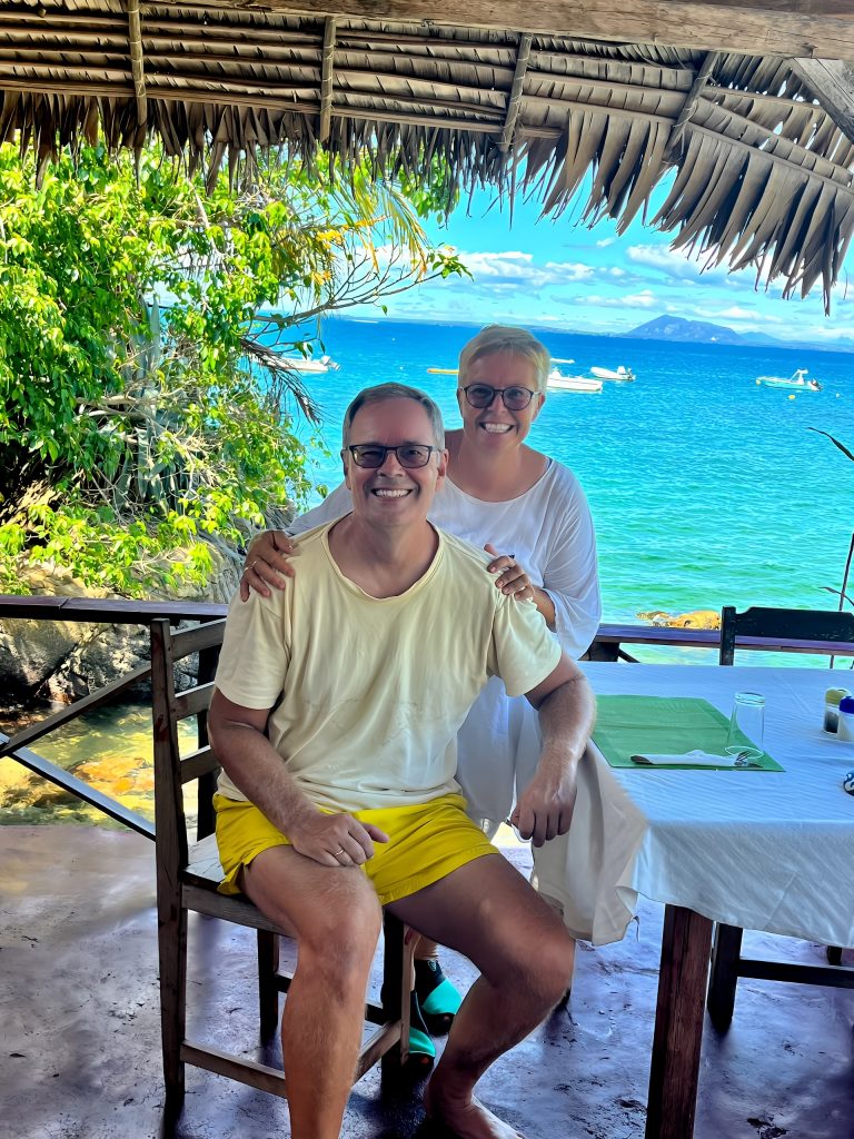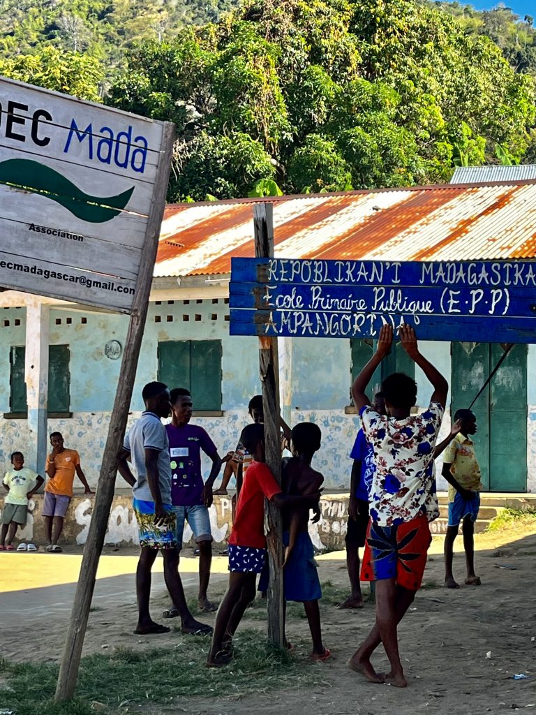 Heute trauen wir uns mal an Land und wollen ein kleines Stückchen von Nosy Komba erkunden. Verunsichert von vielen allgemeinen Warnungen bezüglich der großen Armut und der daraus folgenden Kriminalität, nähern wir uns vorsichtig. Am Strand gibt es Hotels und Restaurants, wobei alles sehr einfach und etwas ausgestorben wirkt. Ein Restaurant, die Empfehlung von anderen Weltumseglern, wollen wir ausprobieren. Es liegt direkt am Strand und wir können unser Dinghy dann gut im Blick behalten. Das Anlanden klappt gut, Klaus und ich ziehen das Dinghy mit vereinten Kräften an den Strand.