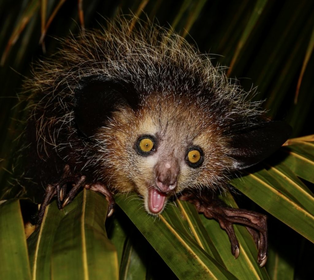 Na dann tschüss, ihr hübschen Lemuren. Wobei bei Nacht, in ihre leuchtenden Augen zu schauen, ist bestimmt gruselig. Die meisten kleineren Lemurenarten sind nachtaktiv. Auch das Aye Aye Fingertier. Ebenfalls eine Lemurenart, aber vom Erscheinungsbild gruselig…