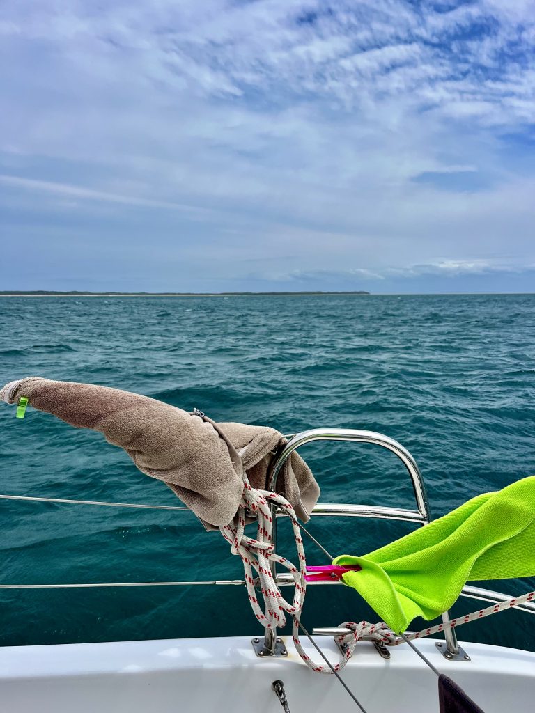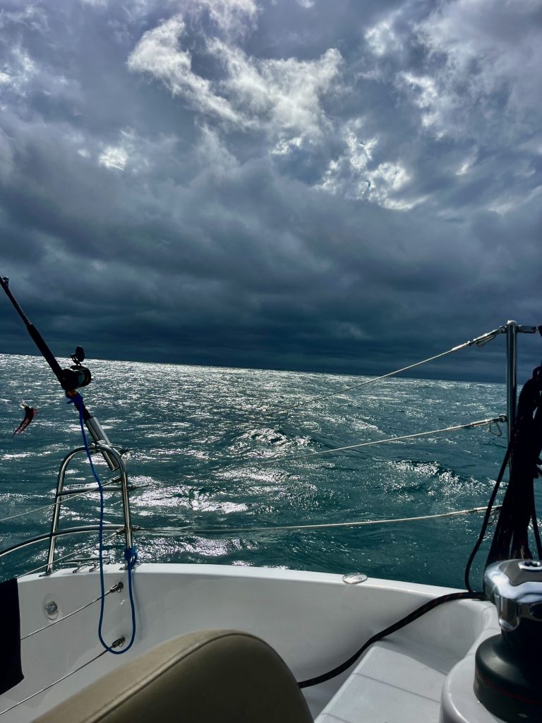 Da kommt nichts Gutes auf uns zu! Die Cielo ist übrigens doch da. Sie fanden die Stelle wo wir sind zu rollig, sie haben einen Monohull, und sind weiter bis vor Maputo geschippert. Da, wo auch die dicken Frachter liegen. Wir können nur den Mast erahnen. Ja, wollen wir auch dahin? Hm…? Das sind nochmal ca. 15 Seemeilen über schwieriges Gebiet und Des wollte das ja nicht. Wir sind alle illegal hier und sollten die Offiziellen von Maputo nicht herausfordern. Aber hier habe ich Angst um unseren Anker… ⚓️. Trotzdem, wir bleiben hier.