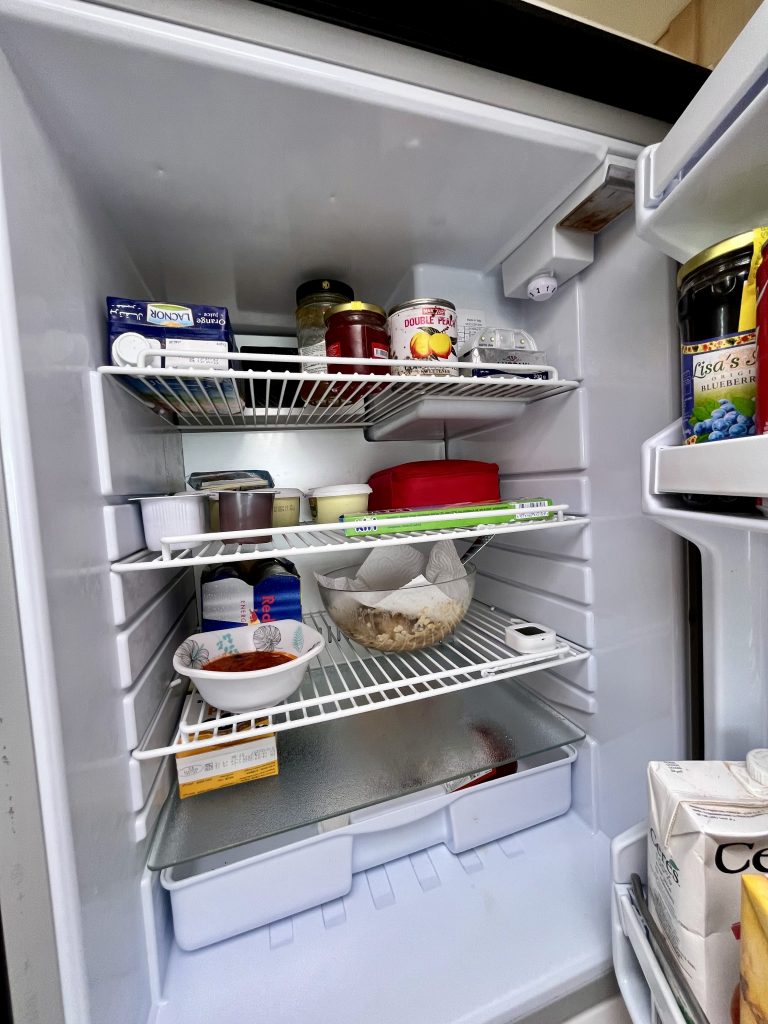 Mmmm, das war lecker. Nun ist Schluss mit frischen Vorräten, denn das Morgenmüsli bekam den letzten Apfel reingeschnitten. Jetzt kann die „Kühlschranktruhe“ aus.