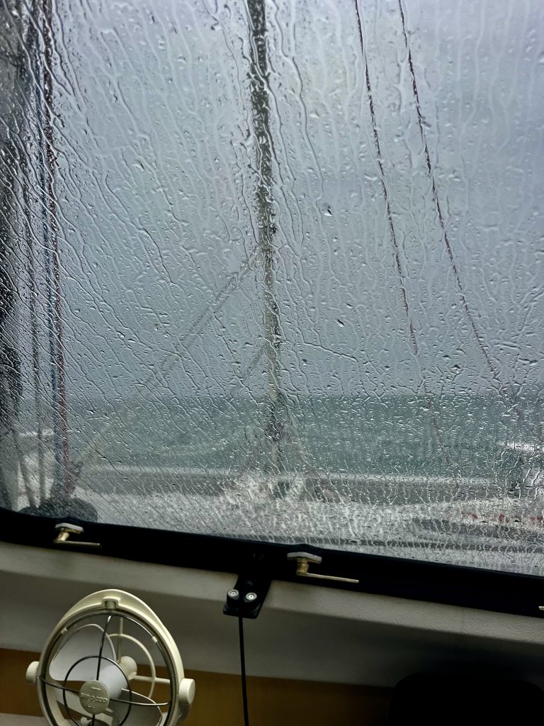 Ufff, was schaukelt das Boot. Es ist schwierig, sich auf den Beinen zu halten. Der Motor läuft seit Stunden und das geht so weiter, bis in die Nacht. Klaus schläft, oder so was ähnliches, immer im Salon, um schnell im Notfall reagieren zu können. Für mich wird diese Nacht eine Herausforderung. In meiner Kajüte höre ich das Reißen, Knacken, Quietschen der Ankerkette extrem laut. Dazu noch das Quietschen der Rollen, Schäkel und Leinen. Grausam! 🙉 Das wäre in Klaus‘ Masterkajüte nicht anders. Beide Betten sind viel weiter vorne und näher am Geschehen dran. Bei mir kommt nun noch das Knacken des Türrahmens obendrauf… 🙊🙉🙈. Terrible!!! Ich könnte natürlich auch im Salon schlafen. Habe ich ja auch schon öfter gemacht. Das Dumme nur, meine Seite ist abschüssig gepolstert und nach einer Nacht dort, tut mir alles weh und Verspannungen sind das Ergebnis.