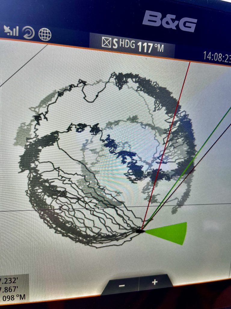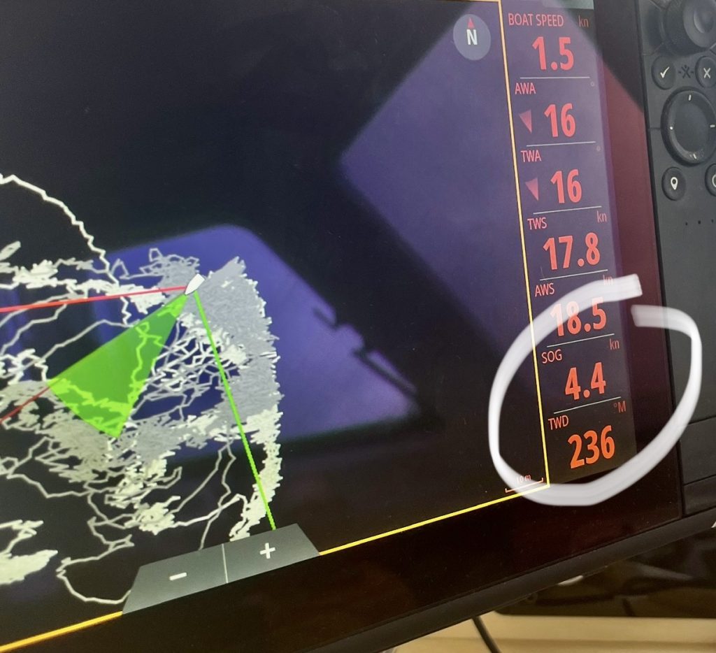 Klaus studiert die Wettermodelle rauf und runter und alle paar Stunden wieder neu. Auch bespricht er sich mit Des. Wobei das nicht so leicht ist, dauert‘s doch oft viele Stunden, bis Des reagiert. Ja, dann entschuldigt er sich auch und berichtet von mehrstündigen Stromausfällen in Südafrika. Ahhh!