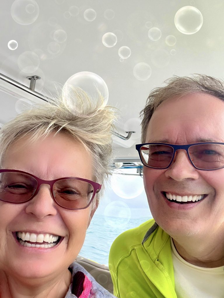 Eigentlich wollten wir in diesen Tagen noch das Boot von außen putzen. Aber wer mag hier schon ins Wasser gehen? NIEMAND!! Zumal Klaus eben noch eine riiiesige Qualle gesehen hat. Mindestens 40 cm im Durchmesser. 🪼 Und so wie das hier mit Strömung und Wellen abgeht, lebensgefährlich!