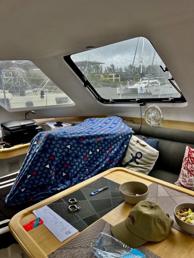 Neuer Tag, Abmeldetag. Klaus saß die Tage schon fleißig über unserem Flightplan. Ja, so etwas muss man hier haben, um weitersegeln zu dürfen. Da muss drinstehen welche Farben unsere Segel haben, das Boot selbst, das Antifouling (wenn Yuti kentert, wie sieht sie von unten aus?), die Seriennummern der Motoren und vieles mehr. Dann muss dezidiert angegeben werden wann wir genau losfahren, auch mit Uhrzeit und wo wir stoppen wollen, mit Datum und Uhrzeit. Toll! Woher sollen wir das denn so genau wissen??? Nun gut. Diese Strecke ist bekanntermaßen sehr gefährlich und sie wollen uns mehr oder weniger auf dem Schirm haben, sollte etwas geschehen. Also sollten wir havarieren. So, nun müssen wir mit diesem Flightplan zur Rezeption unseres Yacht Clubs, die Dame kontrolliert, stempelt und schickt uns dann zur Wasserpolizei. Da fährt uns wieder Eric hin und auch dort bekommen wir abermals Stempel und Unterschriften. Zurück zur Club Rezeption geben wir den Plan ab, die Dame übermittelt alles an weitere Stellen und wir warten. Nach einer Stunde etwa ist alles erledigt, wir bezahlen unsere Club Rechnung (unglaublich günstig), bekommen den Flightplan zurück und noch den Hinweis, dass wir uns morgen noch bei Port Control per Funk abmelden müssen. Okay. Und, dass Klaus auch nochmal einen Online Flightplan abgeben muss. Jepp, das hat er schon erledigt. Puhh 😮💨, geschafft. Jetzt verabschieden wir uns noch von Dennis und Nata und Hürgen natürlich. Vielleicht sehen wir alle in Cape Town wieder?!