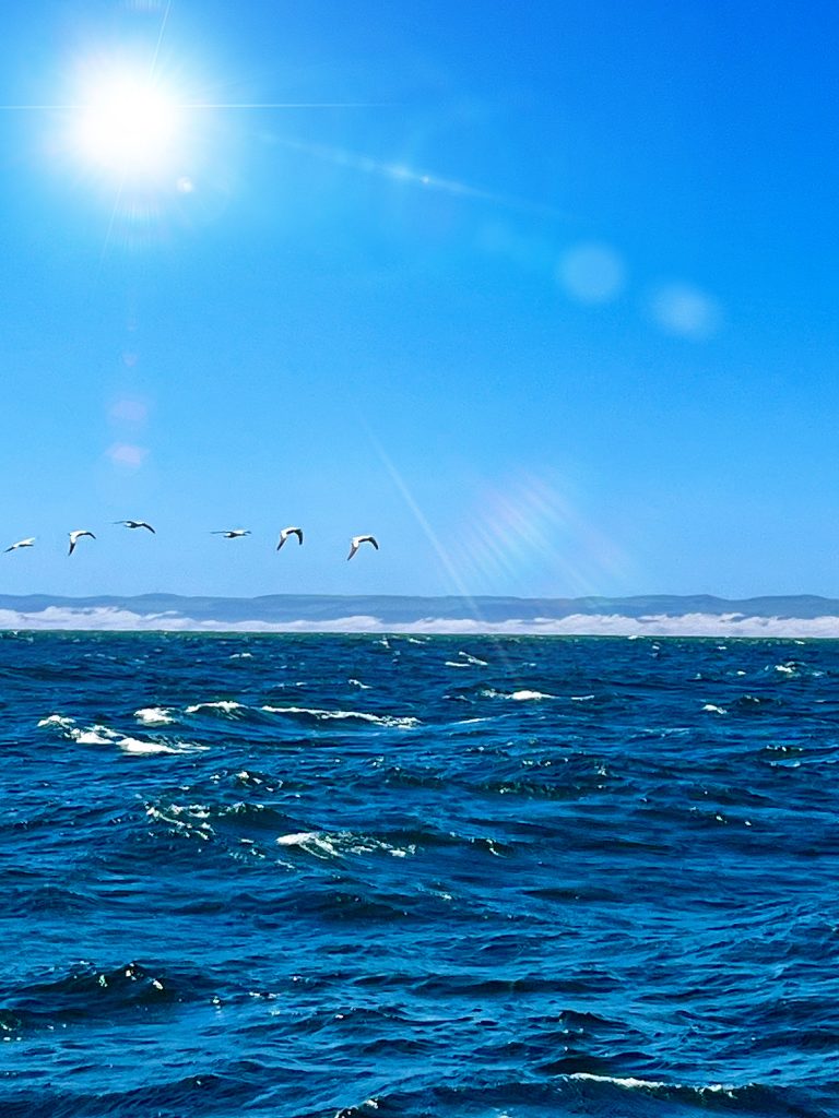 Plötzlich brodelt das Meer um uns herum… 😲. Was ist denn da los? Wir müssen in eine gigantisch große Menge von jagenden Delphinen geraten sein. Auch Wale sind unter ihnen und die Vögel natürlich auch… 🤩.