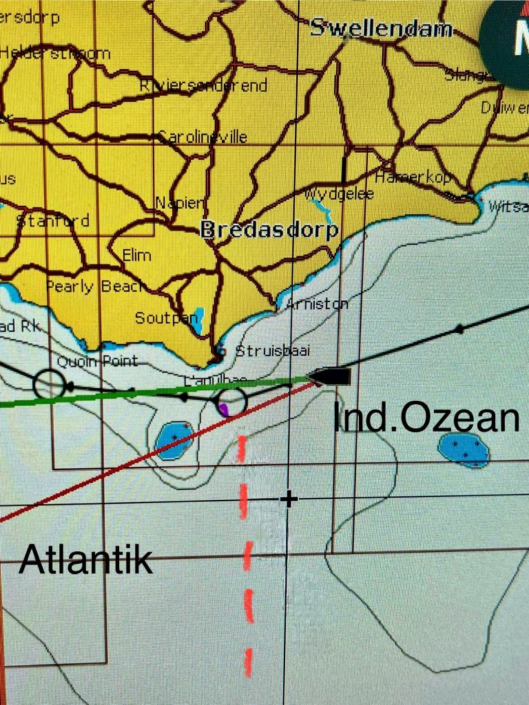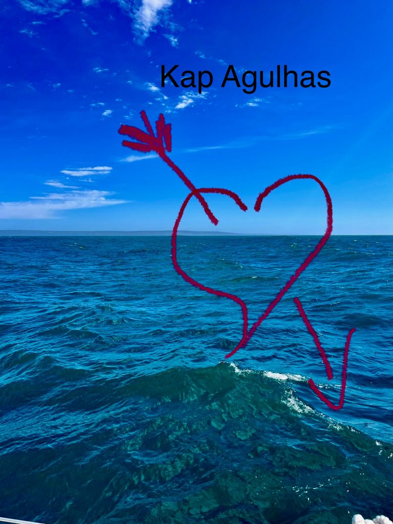 Bald erleben wir den denkwürdigen Moment, wo wir den Indian Ocean verlassen und den Atlantic erreichen werden. Geographisch passiert das genau am 20. Grad östlicher Länge und 35. Grad südlicher Breite. Genau am Kap Agulhas. Ein Weltmeer löst das andere ab, witzig! Das Kap Agulhas ist zudem noch der südlichste Zipfel ganz Afrikas und dazu auch noch der südlichste Punkt unserer gesamten Reise. Südlicher werden wir nicht mehr kommen. Das bedeutet auch, dass das gesamte Kap der guten Hoffnung bereits im Atlantik liegt. Ein wirklich denkwürdiger Moment, dem wir entgegen segeln.