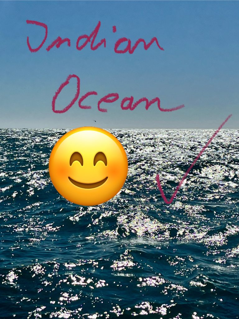9:15 Uhr, wir haben es geschafft, wir haben den Indischen Ozean durchquert und geben uns ein Küsschen 😘.