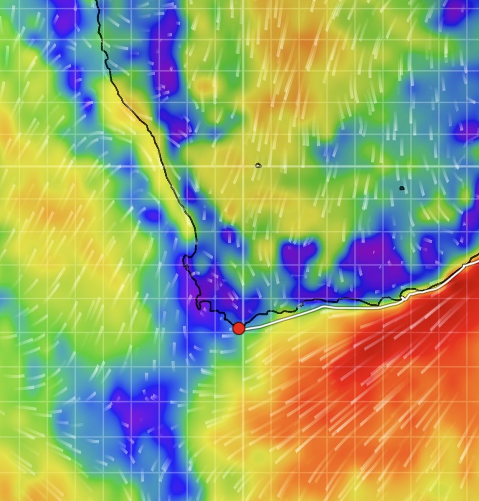Den Indischen Ozean durchquert zu haben können wohl nicht viele von sich behaupten. Das ist schon ein echter Meilenstein für uns und ein tolles Gefühl! Nun soll es ja seglerisch immer leichter werden, sagen die Profis. Die Strecke von heute Morgen war schon richtig schön. Langgezogene Wellen, Wind aus der richtigen Richtung, passend für das Screecher und Sonnenschein. Aber das Wasser ist im Küstenverlauf Südafrikas immer kühler geworden. Hier hat es nur noch 16 Grad, uaaaa 🥶… Auf den Malediven hatten wir bis zu 32 Grad Wassertemperatur.