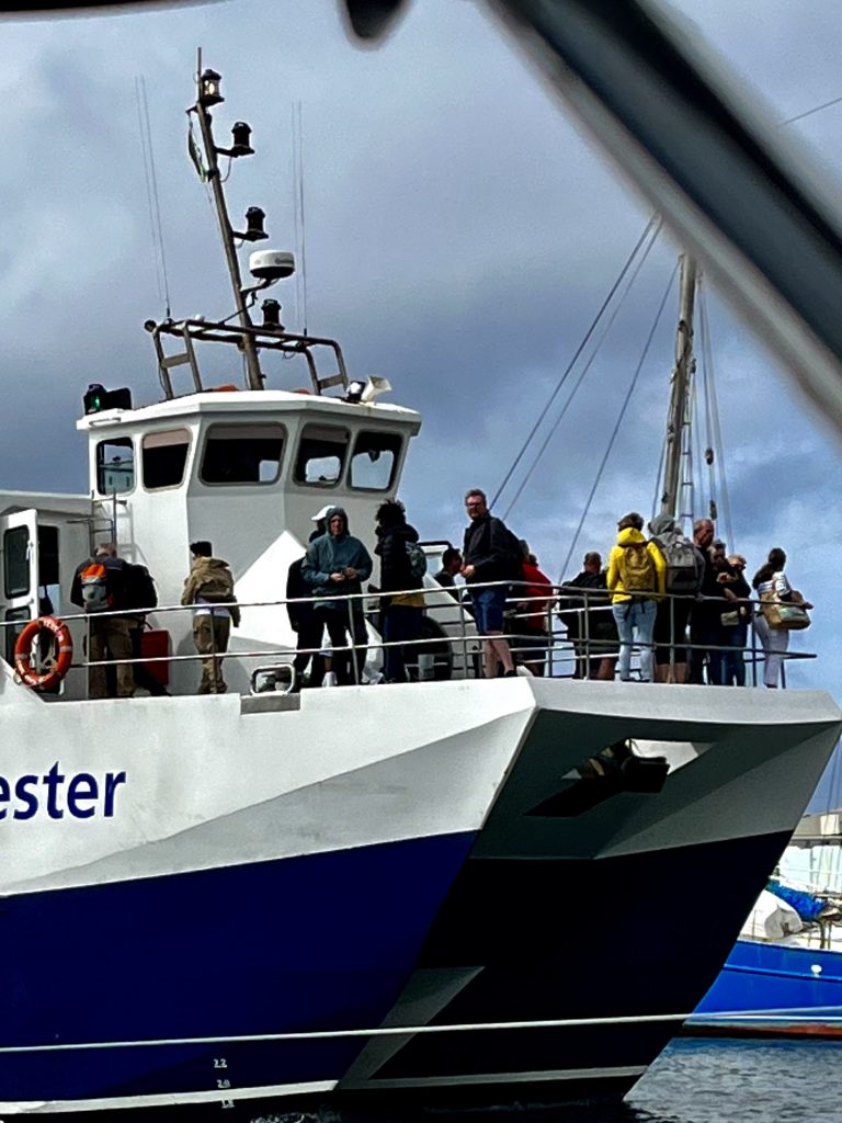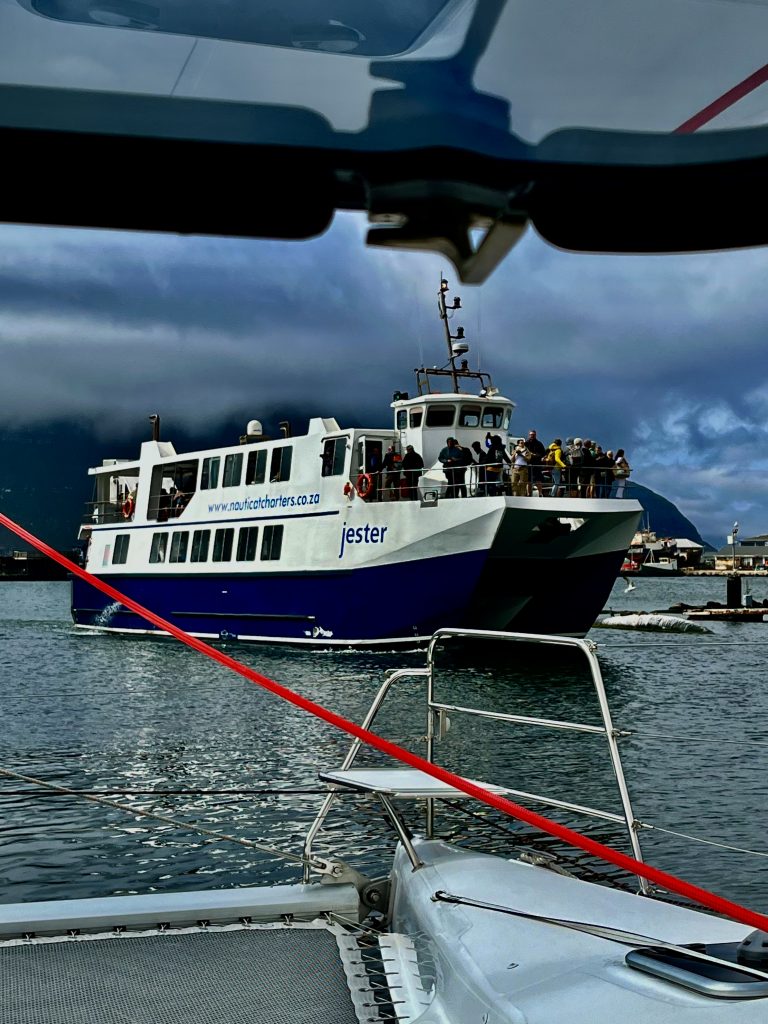 Es ist Samstag und hier ist echt der Bär los! Ein Ausflugsboot nach dem anderen macht sich vollgepackt mit Touristen auf den Weg zur Robben Insel. Eigentlich brauchen wir das nicht. Wir haben die Robben ja schon fast an Bord. 🤭