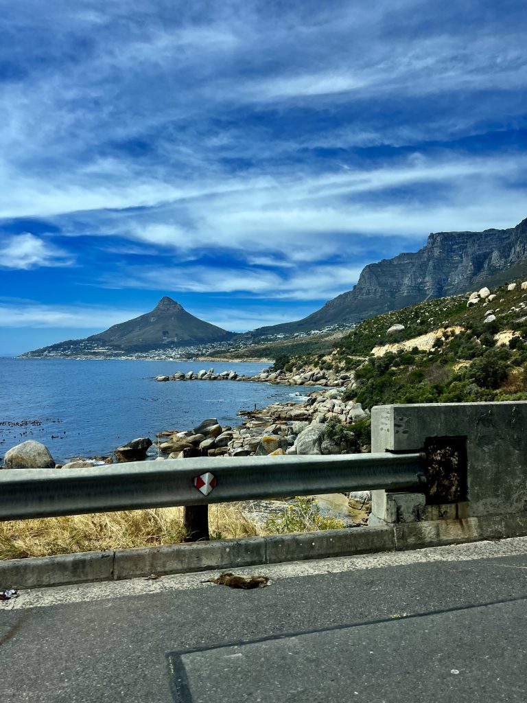 Wir bezahlen und warten dann aufs Uber Taxi. Wieder fährt uns ein wirklich netter Schwarzer zu unserem Ziel. Er ist sehr an uns interessiert und möchte sich am Ende unserer Fahrt auch ein Boot in Vietnam kaufen und nach Amerika schippern…, ha, ha, ha, nur Spaß 😄. Wir fahren eine sehr schöne Küstenstraße, die Tafelberg Road, entlang, mit tollen Ausblicken aus dem Auto heraus.