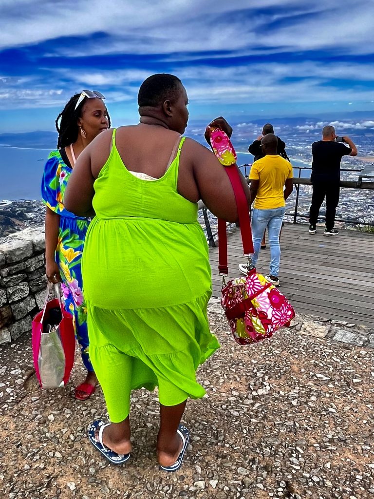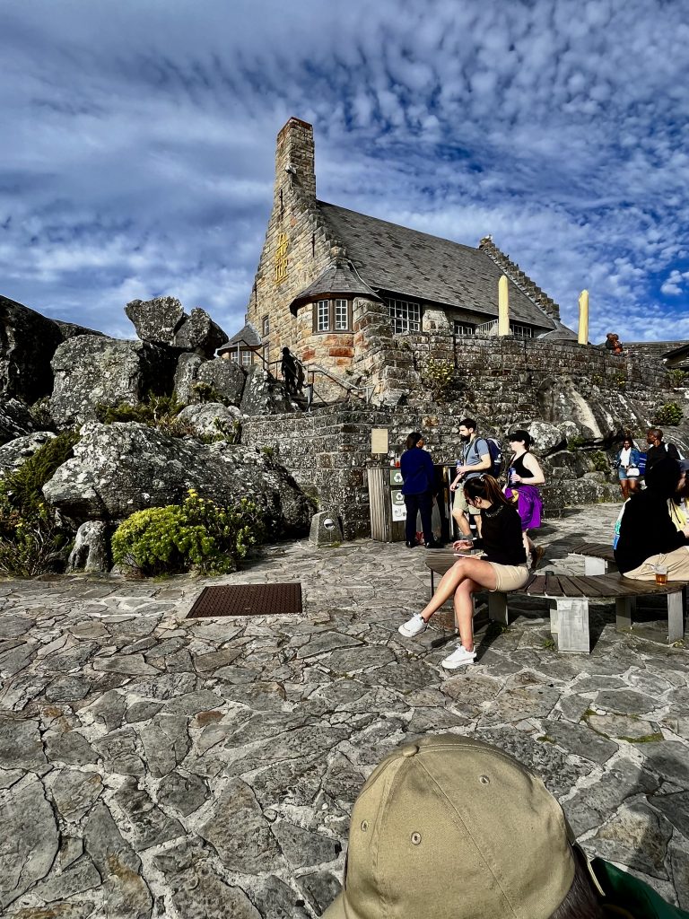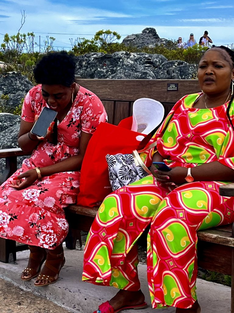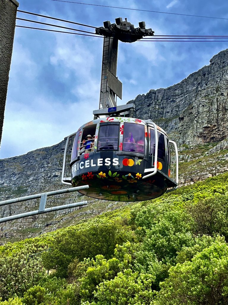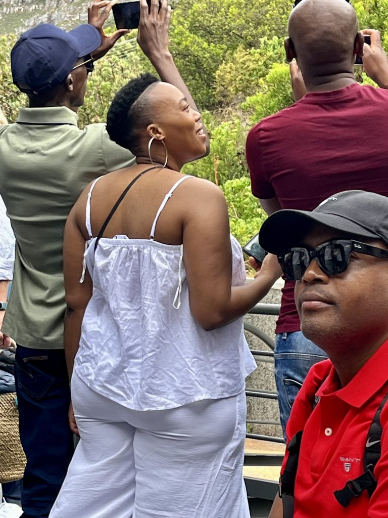 Wir hingegen gehen mal vor und wollen uns ein Uber Taxi rufen und zum Tafelberg fahren. Es ist bereits Mittag und die Essensdüfte ziehen in unsere Nasen. Ich glaube, wir haben Hunger. 🤤 Dann geht’s mal hoch ins Restaurant, an den Trommlern vorbei, neeee heute nicht, Leute! Heute muss mal wer anders mit euch mittrommeln… Heute höre ich mal nur von oben zu. Das sind ja brasilianische Klänge… 🙃