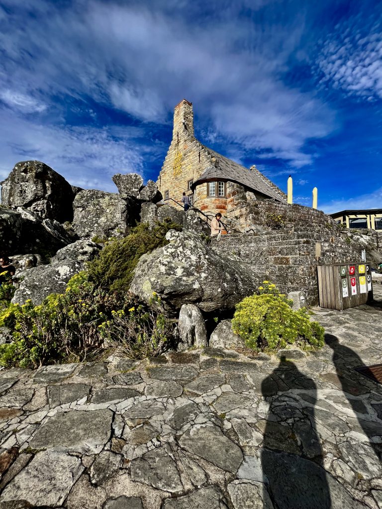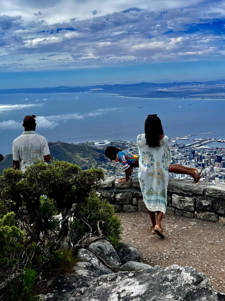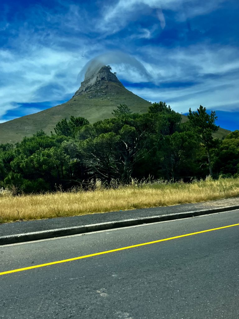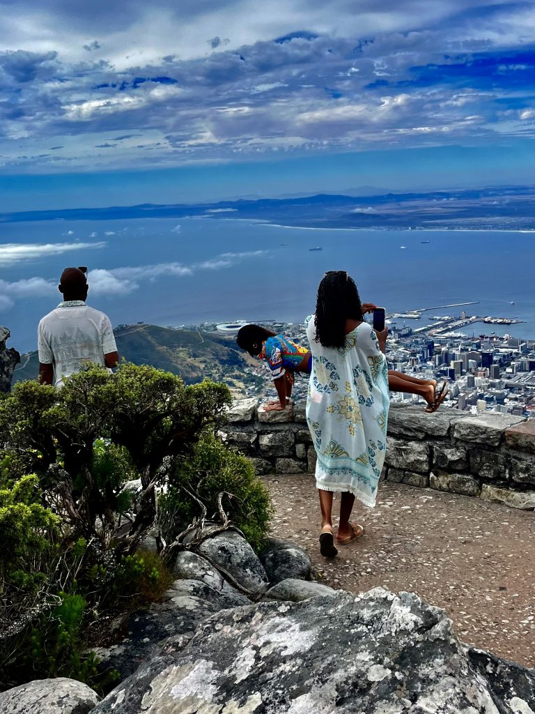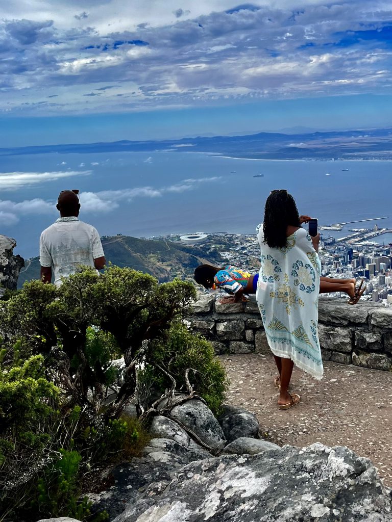 Wir hingegen gehen mal vor und wollen uns ein Uber Taxi rufen und zum Tafelberg fahren. Es ist bereits Mittag und die Essensdüfte ziehen in unsere Nasen. Ich glaube, wir haben Hunger. 🤤 Dann geht’s mal hoch ins Restaurant, an den Trommlern vorbei, neeee heute nicht, Leute! Heute muss mal wer anders mit euch mittrommeln… Heute höre ich mal nur von oben zu. Das sind ja brasilianische Klänge… 🙃