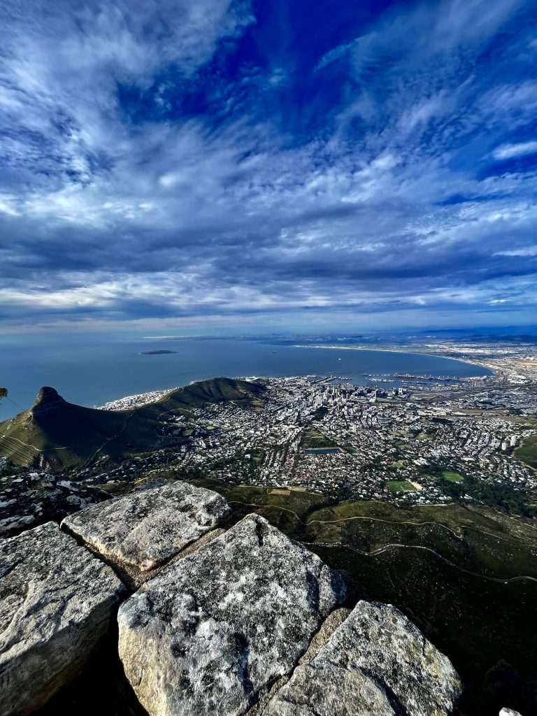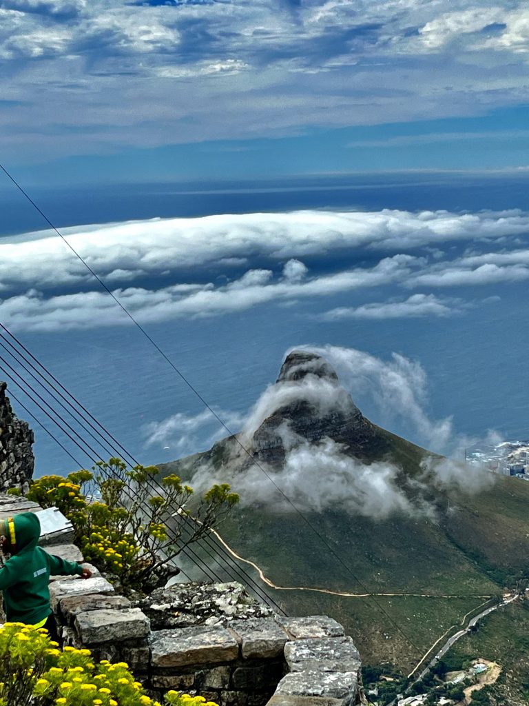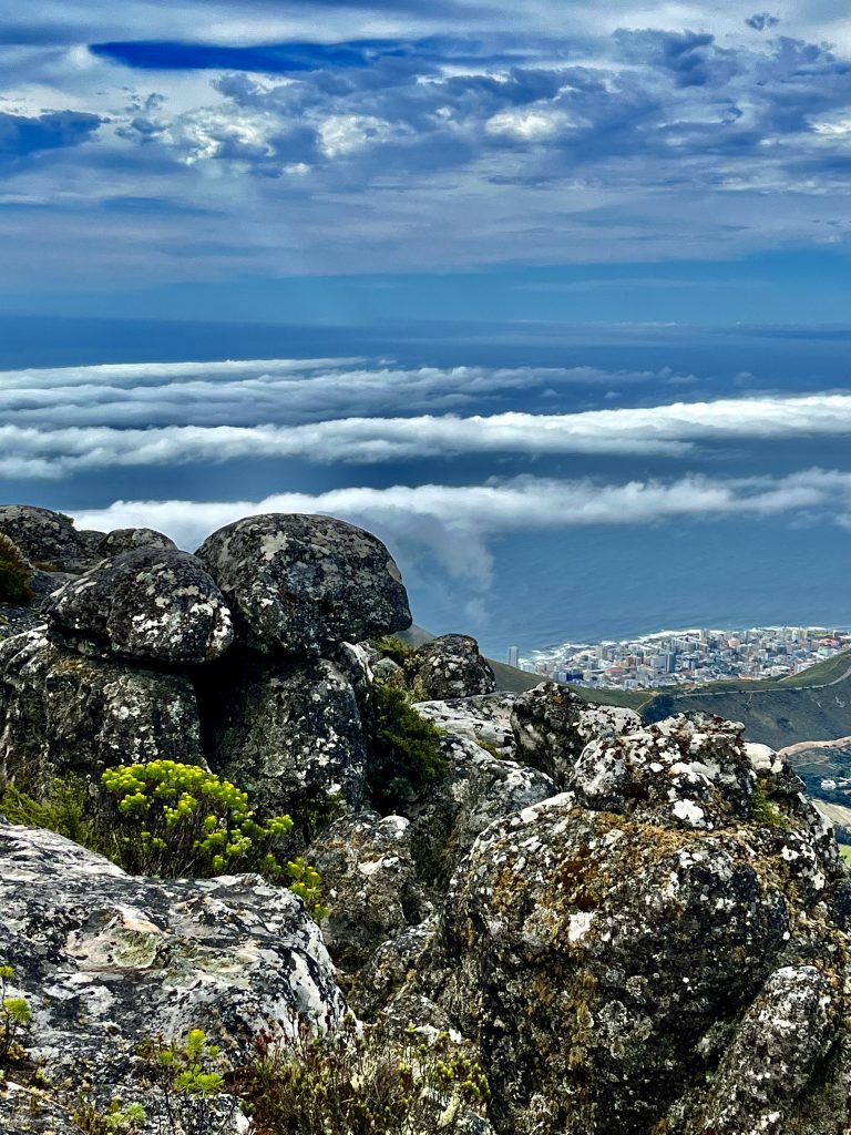 Und die Erhebung ganz hinten, mit dem Wolkenkranz, ist das Kap der guten Hoffnung.