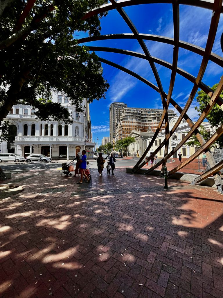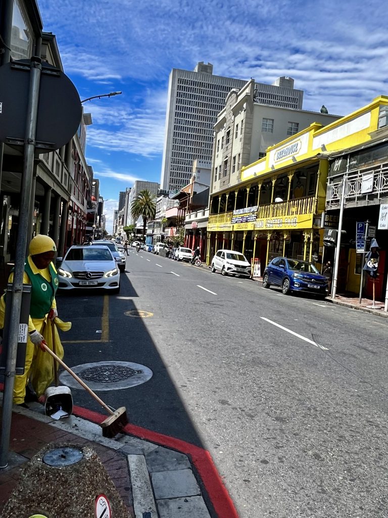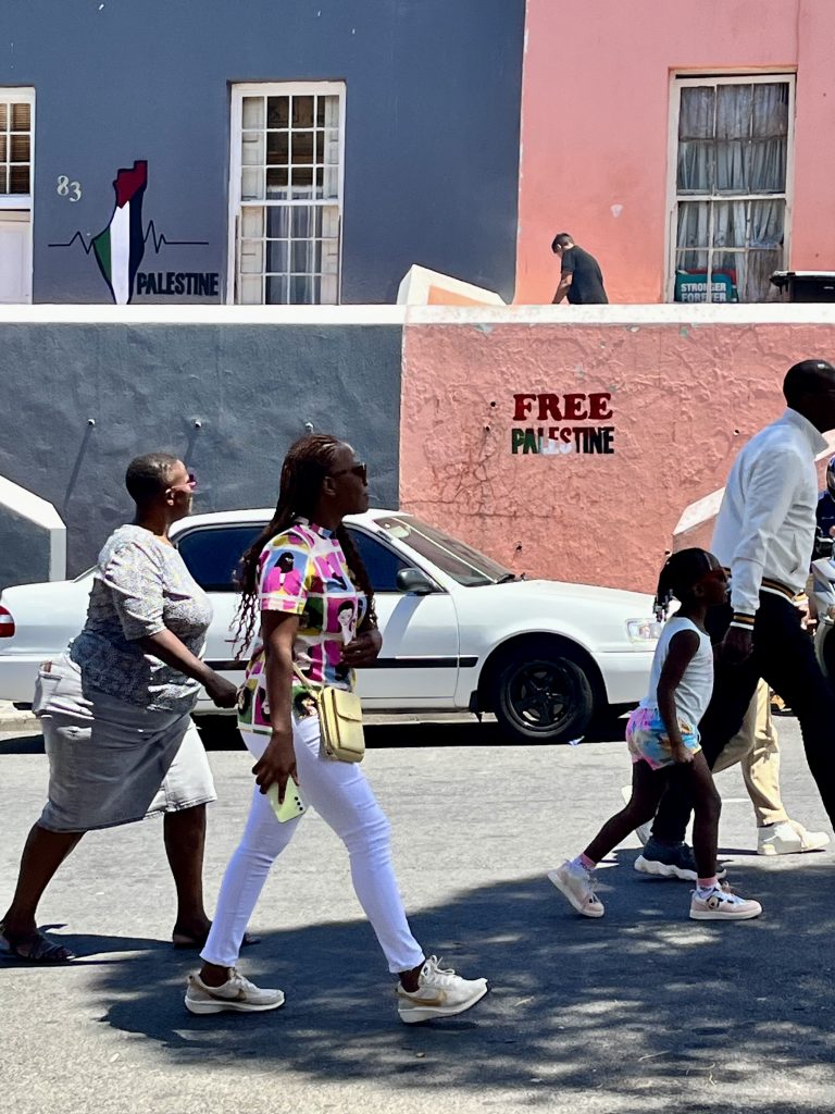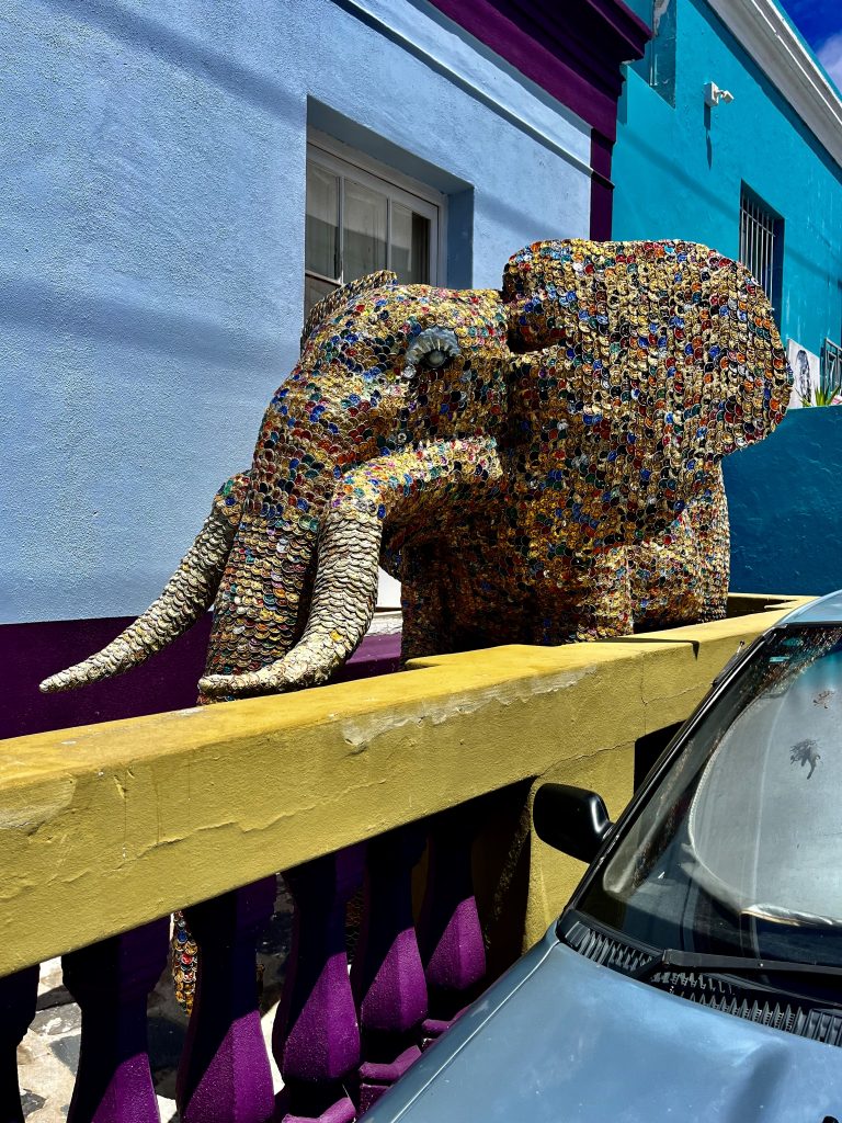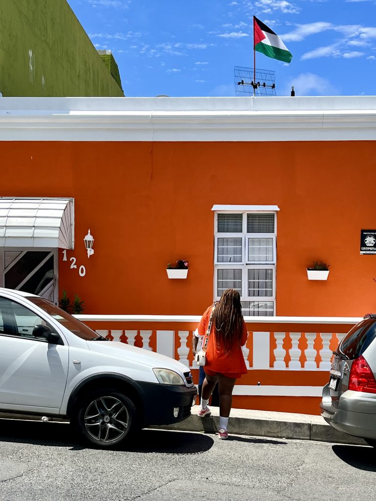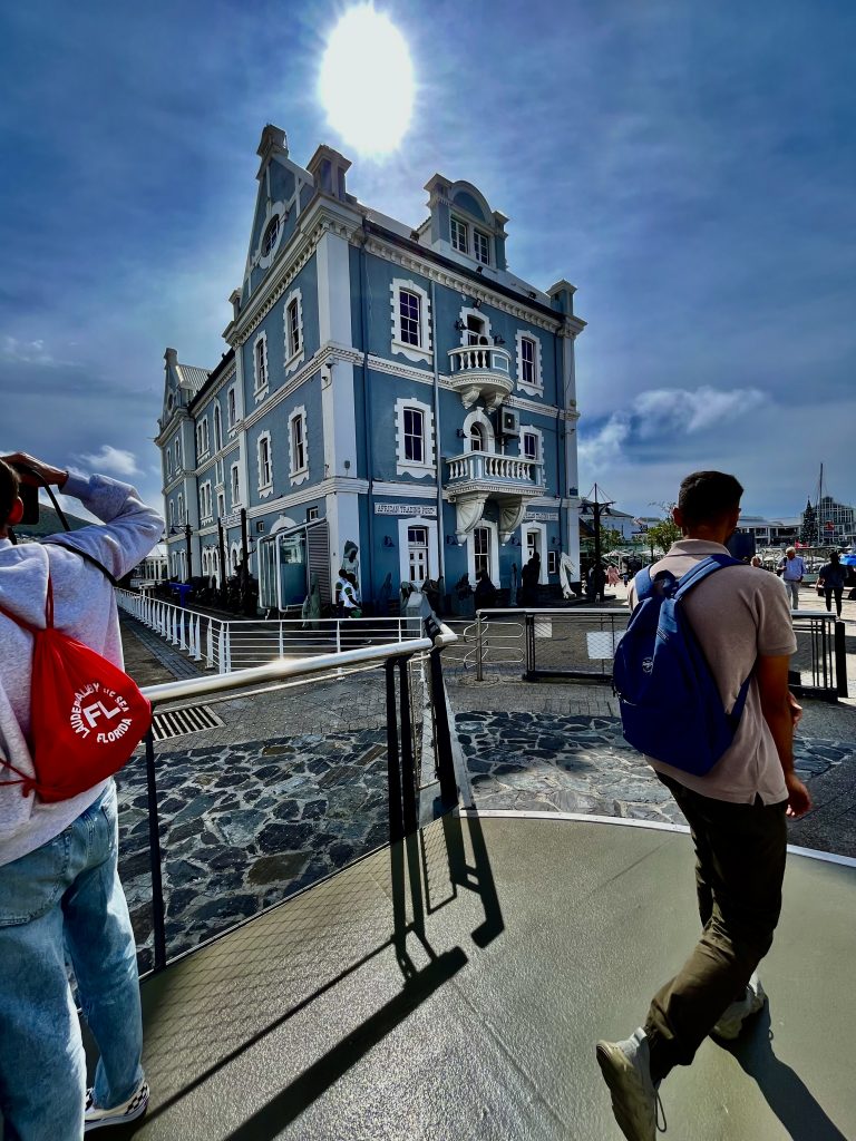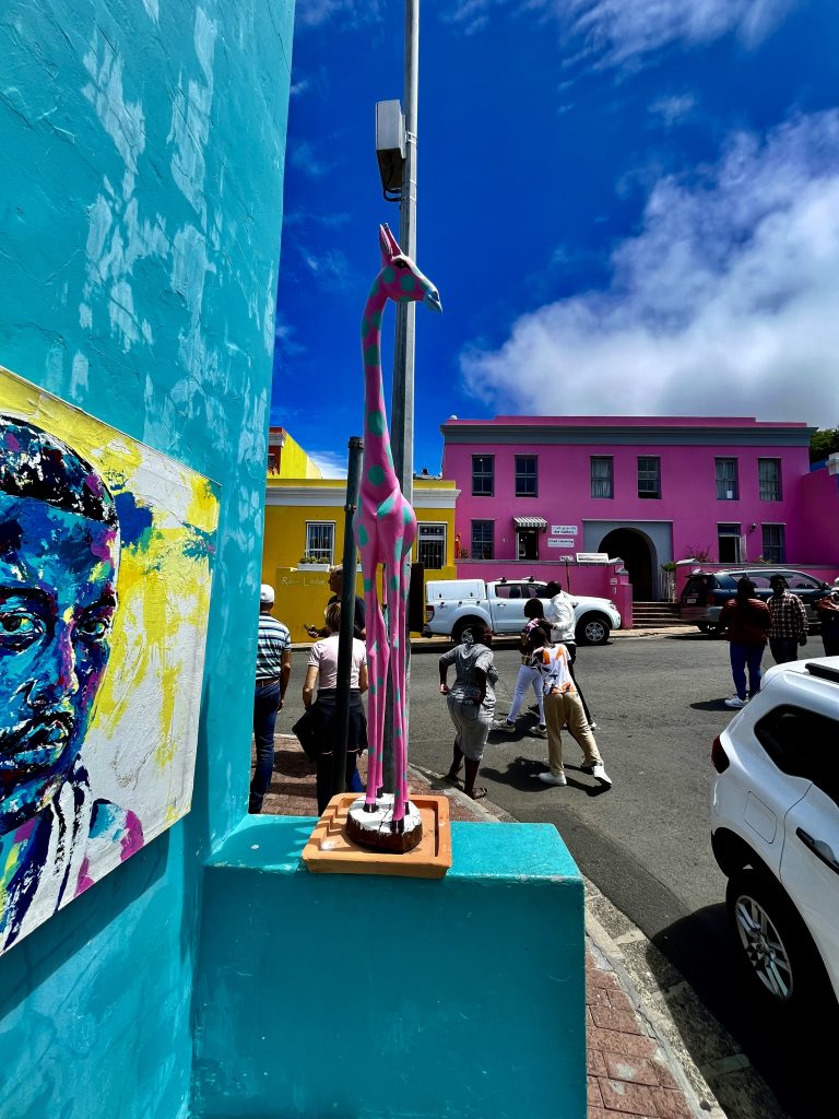 Nun schauen wir uns mal die Stadt am Fuße des Tafelbergs an. Das wunderschön gelegene Kapstadt, zwischen Bergmassiv und Meer. Eine ganz besondere und einmalige Kulisse. Wir machen einen Stadtspaziergang, nachdem uns ein suuuper netter Uber Fahrer hingebracht hat. Wir haben eine sehr lebhafte Unterhaltung während der Fahrt. Er beschreibt uns seine Kundschaft, überwiegend Deutsche… Sie wären, anders als wir, eher ernst und sorgenvoll. Sie, die Südafrikaner hätten auch Säcke voller Probleme und Schicksalsschläge zu verkraften, aber sie gingen anders damit um. Ein Tag ist man betrübt, dann ist die Fröhlichkeit wieder zurück. So lebt es sich definitiv besser. Auch würden sie hier in Cape Town viel und hart arbeiten, aber immer mit Spaß und einem lächelnden Move, einer beschwingten Fröhlichkeit. Die andere Seite sei halt die große Armut weiter Teile der schwarzen Bevölkerung. Die führe zu Drogenkonsum und Kriminalität. Aber, seit sie eine Weiße mit deutschen Wurzeln als Bürgermeisterin hätten, ist vieles besser geworden. Ja, das hatte Klaus schon recherchiert. Sie hat unter anderem dafür gesorgt, dass es ein großes Personalnetz an Security Leuten gibt, in und um Cape Town. Übrigens leben 30.000 Deutsche in der Stadt und 100.000 Deutsche haben hier ihren Zweitwohnsitz. Na dann mal los. Wir beginnen unseren Spaziergang in Bo Kaap, dem moslemischen Viertel, mit seinen hübschen, bunten Häusern, kleinen Kunstgalerien und Lädchen.