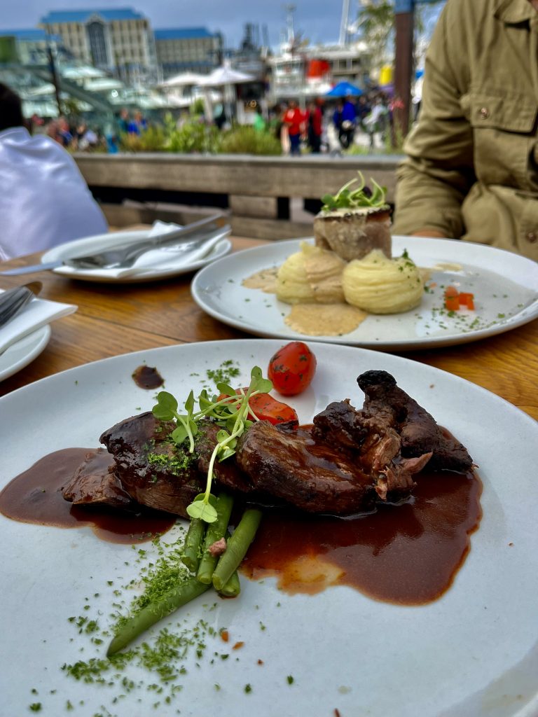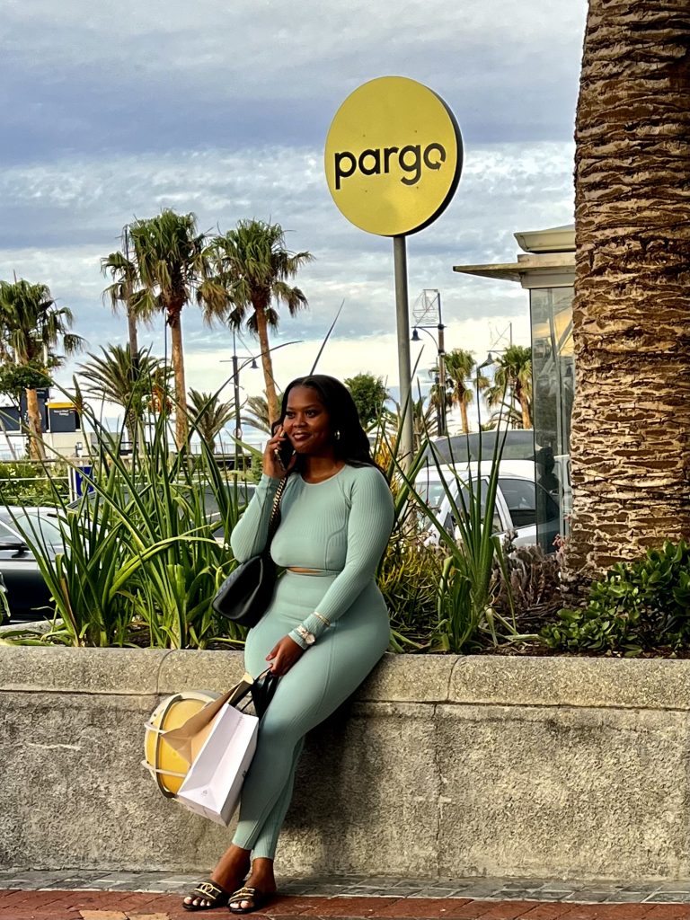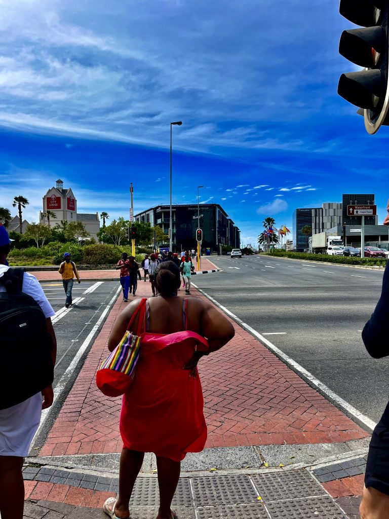 Zu guter Letzt laufen wir noch zur Mall. Eine Mall, die wieder keine Wünsche unerfüllt lässt. Aber die Preise sind zum ersten Mal gesalzen. Also wird nur geschaut. Bei Woolworths kaufen wir dann aber doch noch Obst, Brot und Süßes 🫢. Wir warten aufs Uber Taxi und diese hübsche Lady auch. Sie weiß, dass sie gut aussieht und unterstreicht alles was sie hat. Was fast alle schwarzen Frauen tun, ob zu ihrem Vorteil oder auch nicht. Ähnlich wie auf den Seychellen sind die Frauen rund und selbstbewusst, die Männer oft dünne Heringe und wirken mit ihren Kappen oder Wollmützen eher etwas verkleidet.
