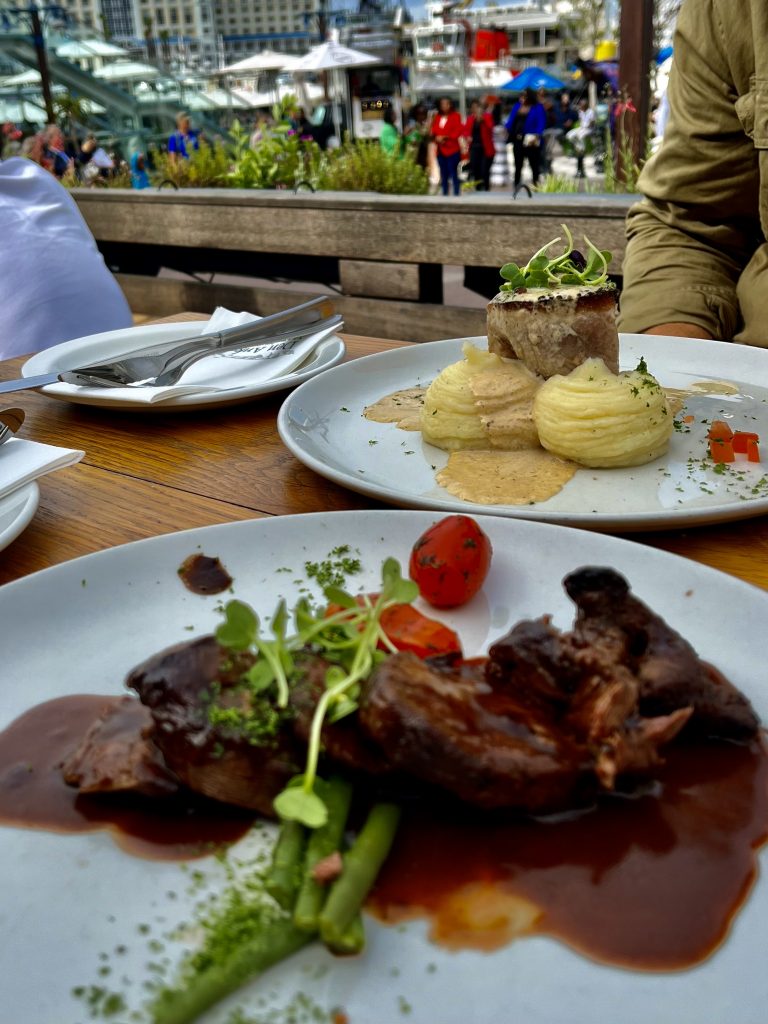 Im Hintergrund sieht man das V&A Hotel. «V» steht für Queen Victoria und «A» für ihren zweitgeborenen Sohn, Albert. Albert legte 1860 den Grundstein für die über 1 km lange Wellenbrechermauer. Beiden zu Ehren wurde das Viertel nach ihnen benannt.