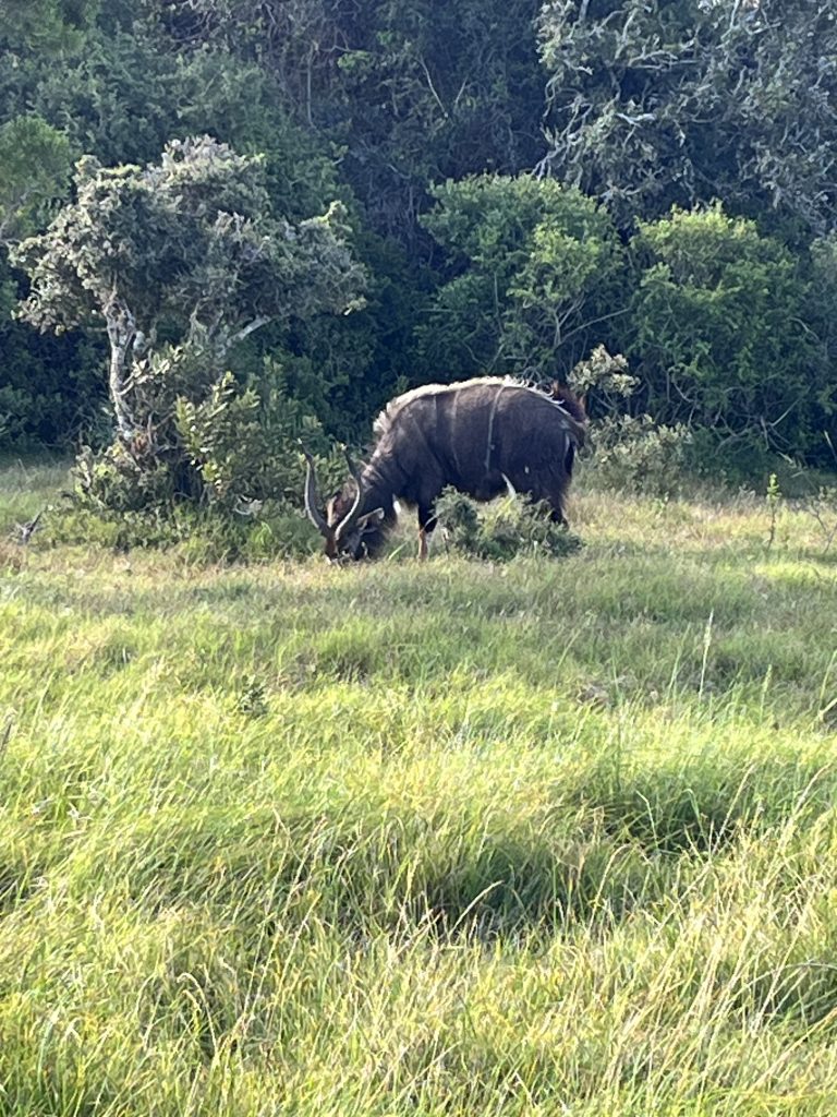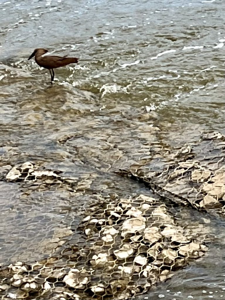 Wir sehen einen Nyala Mann in seinem Revier, die Weibchen kommen vorbei wenn sie Bock auf Ihn haben 😉. Dann wird eine sich kratzende Giraffe erblickt, ein Affe und ein Hammerkopf.
