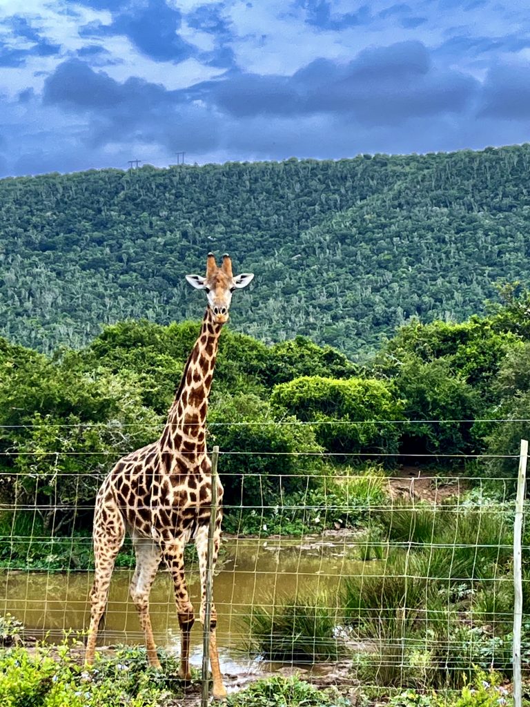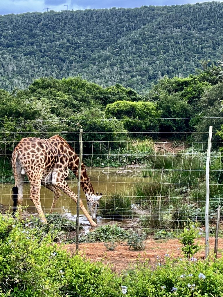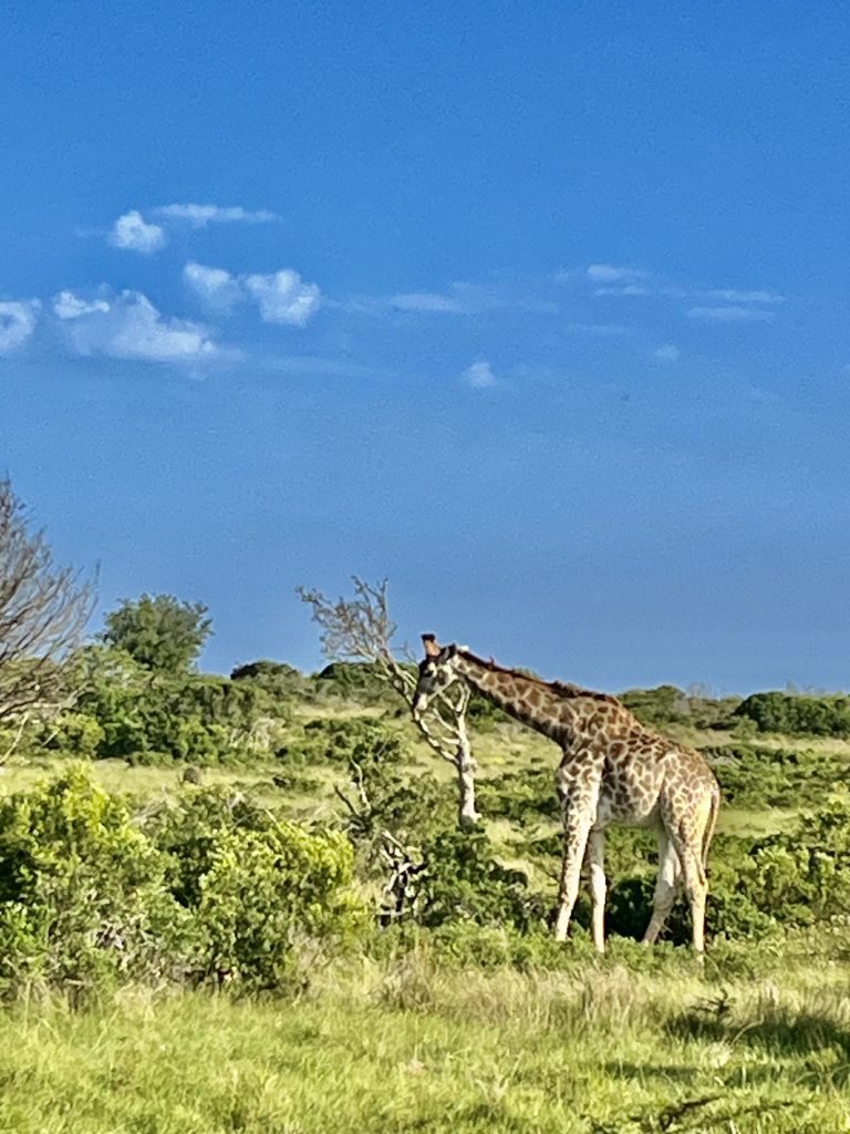 Wir fahren weiter und bewundern eine sehr schöne Giraffe im Nachbargelände. Wie heißt es so schön, die Früchte aus Nachbars Garten schmecken am besten? Gilt das auch für die zu bewundernden Tiere?
