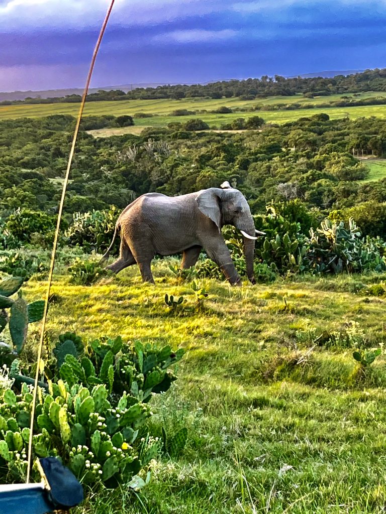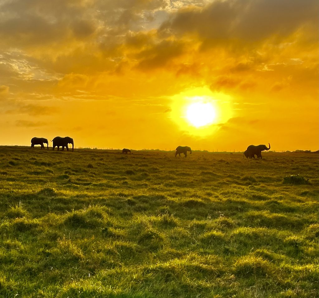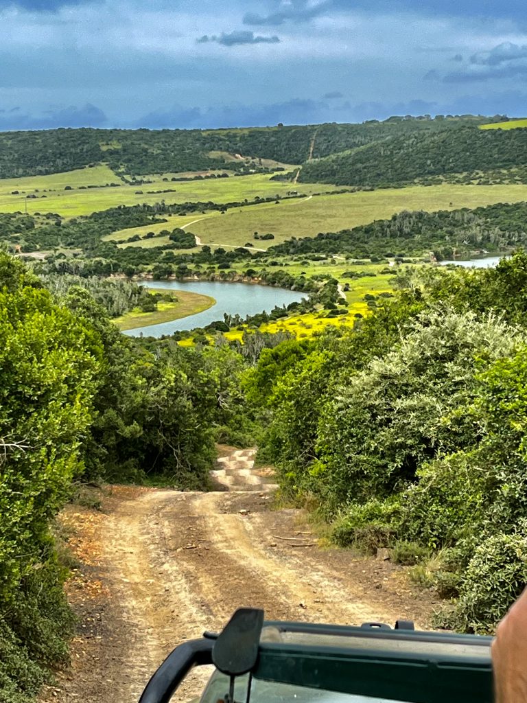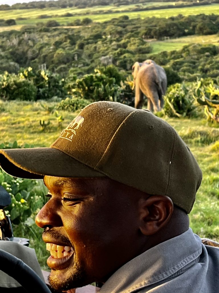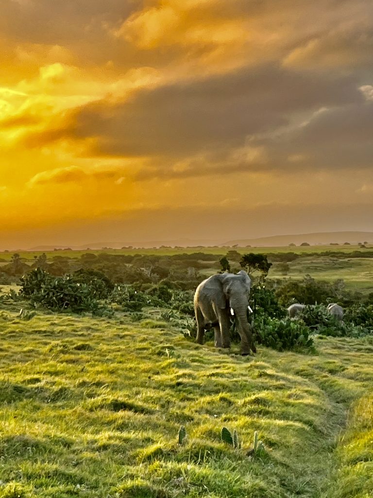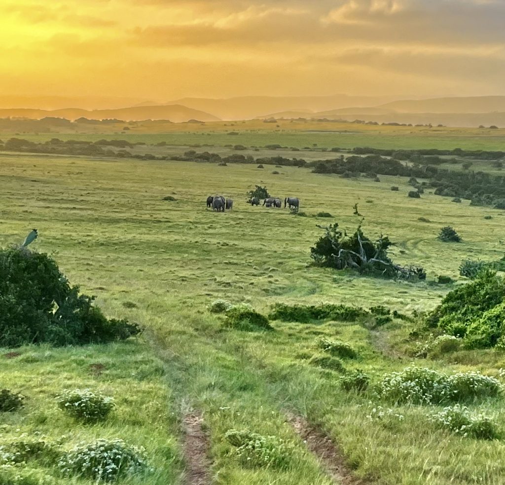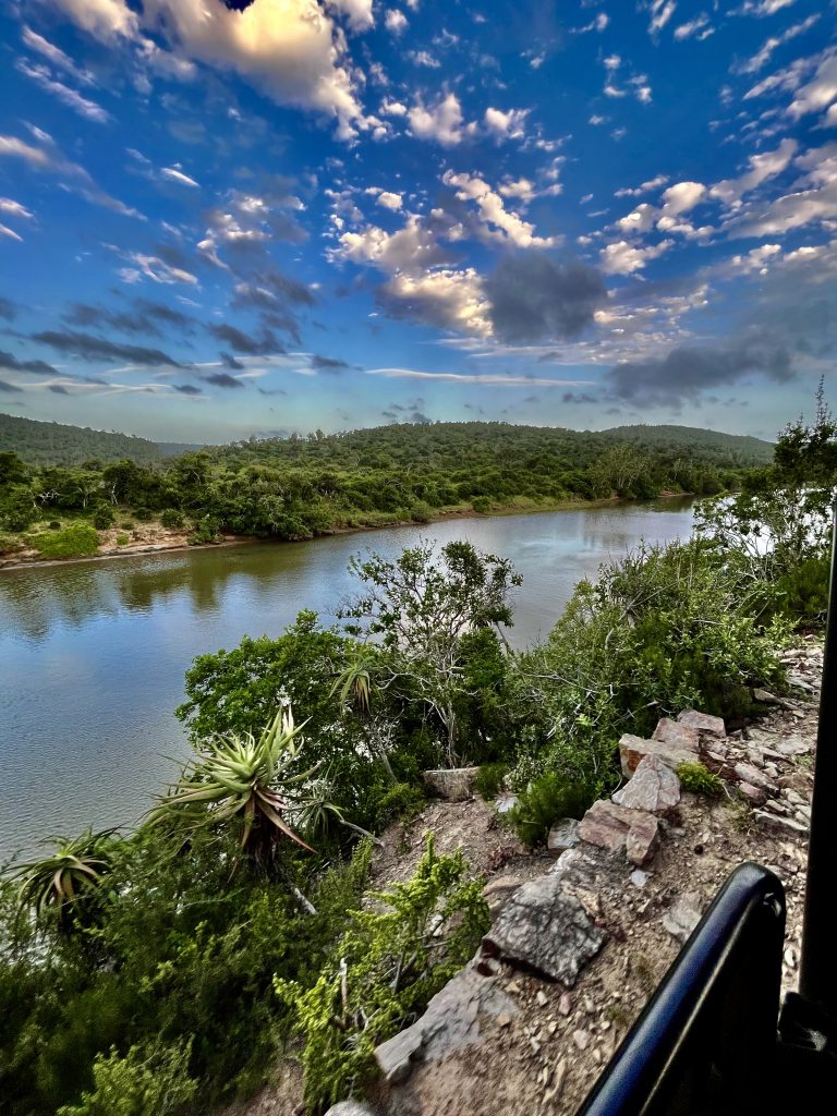 Ich glaube, der eine oder die andere schaut gar nicht hin bei diesen Mörderwegen 🙈. Wir durchqueren das große Gelände von einer Bergkette runter bis zur anderen Bergkette wieder hoch. Zwischendrin überqueren wir noch den Fluss und Mashudu hat’s wirklich eilig. Es dämmert schon und die Elefanten wollen in ihr Nachtlager. Da❣️ Geschafft❣️ Wir sind gerade noch rechtzeitig…