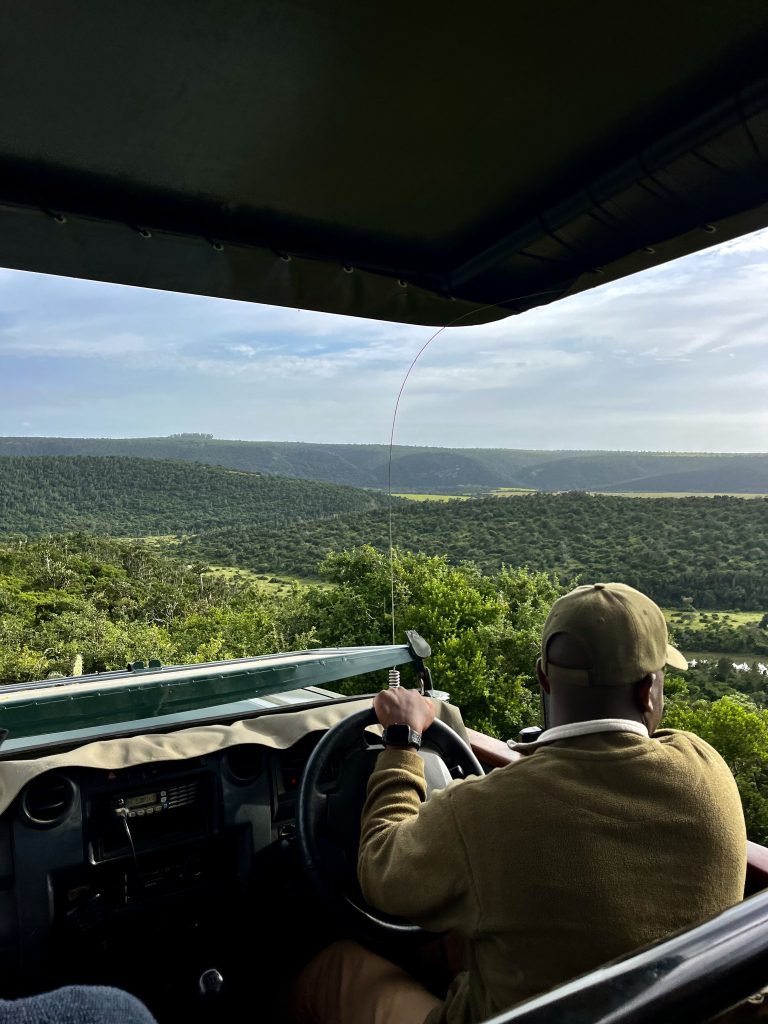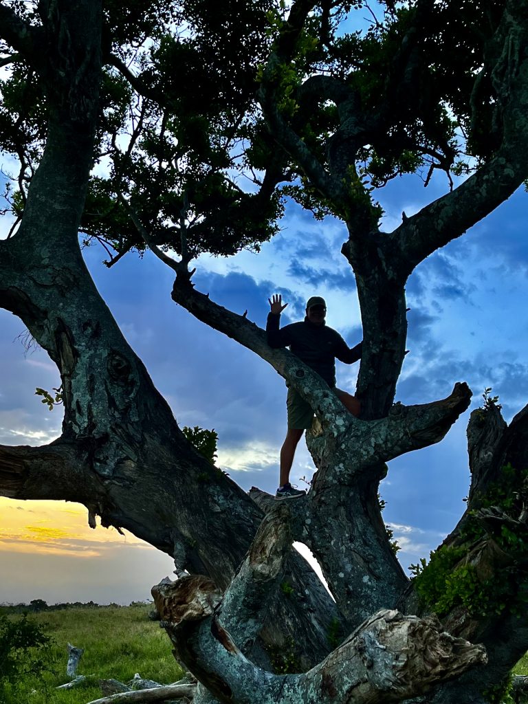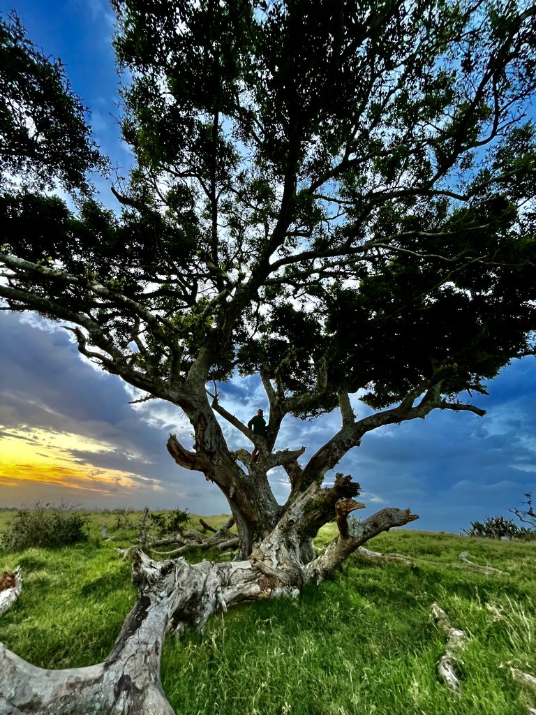 Mashudu ist sehr zufrieden und happy❣️Nun bringt er uns, für einen kleinen Abendsnack, zum Afrikabaum. Dort ist die höchste Stelle des gesamten Reviers und es ist wunderschön.🤩