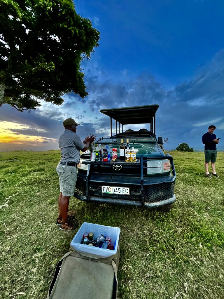 Und dann gibt es, stilecht vorne auf dem Jeep präsentiert, den Abendsnack und all die Getränke, die sich jeder zuvor ausgesucht hatte. Wow, fast dekadent!