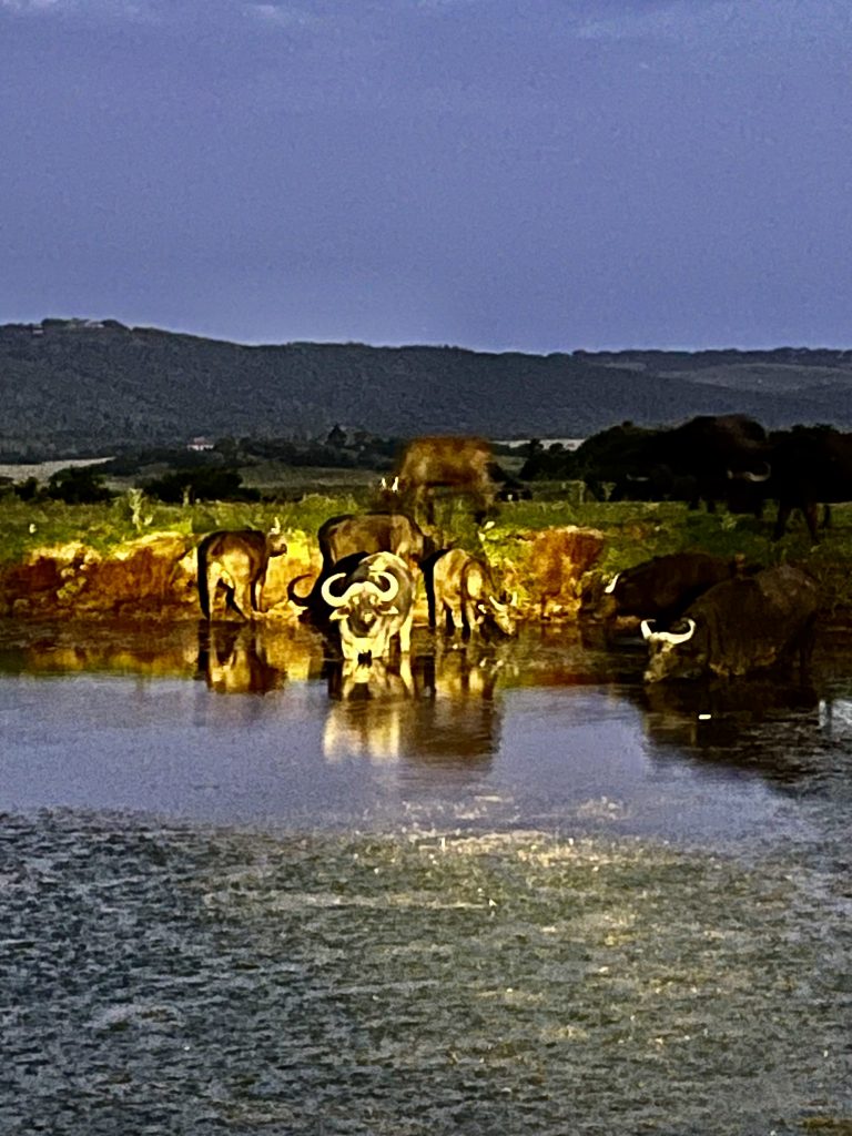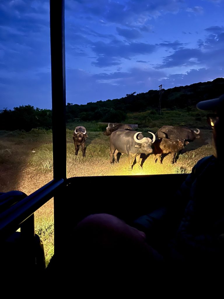 Na dann schlaft mal schön, wir müssen jetzt zum Dinner. 🍽️ 🍷 Nee, meint Mashudu. Mit Schlafen ist da nichts, wer nachts im Busch schläft, könnte morgens bereits tot sein. Büffel ruhen erst wieder bei Helligkeit und Giraffen schlafen ganze 10 Minuten. Nee, das wäre dann nichts für mich! Wo ich doch sooo gerne und lange schlafe… ☺️.