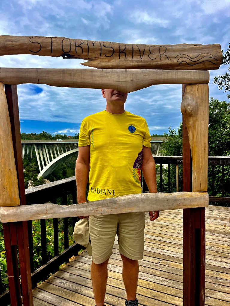 Sehr gut organisiert kann man hier ein wahres Adrenalinabenteuer erleben. Aber WIR heute nicht. WIR kaufen stattdessen eine Flitsche und einen kleinen Steinpinguin. Beides handgemacht und von einem großen Verkaufstalent an den Mann und die Frau gebracht. 😊 Und weiter geht’s. An Plett vorbei, düsen wir nach Knysna.
