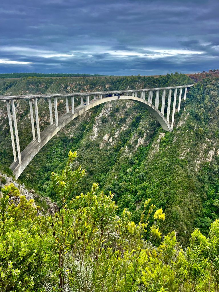 Nach dem Tsitsikamma National Park fahren wir heute nach Plettenberg, kurz Plett genannt. Der Weg ist nicht weit und wir schauen uns vorher noch zwei coole Brücken an und anschließend Knysna, den Ort, von dem Einheimische wie Touristen gleichermaßen schwärmen. Über die erste Brücke fahren wir erst einmal, halten an der dortigen Tankstelle an und laufen ein kurzes Stück zur Brücke zurück.