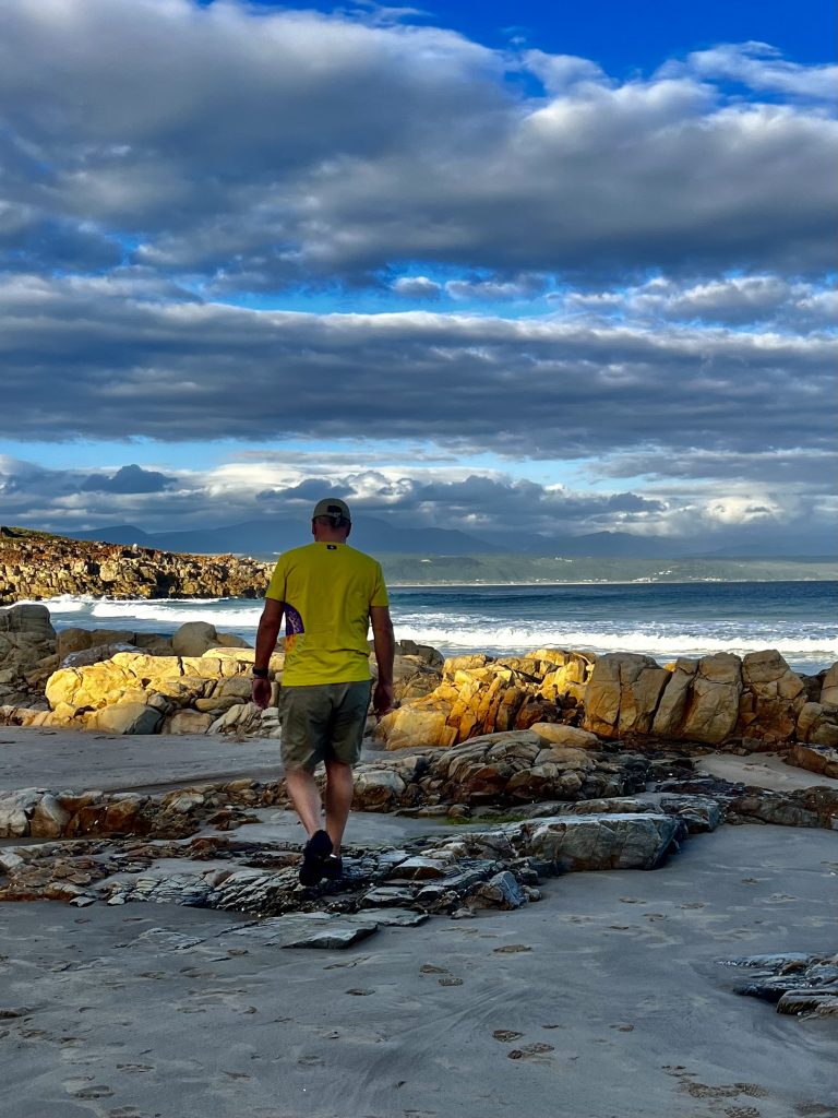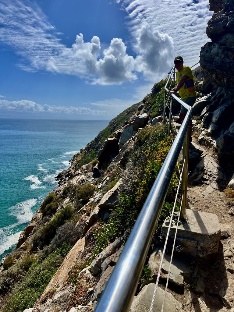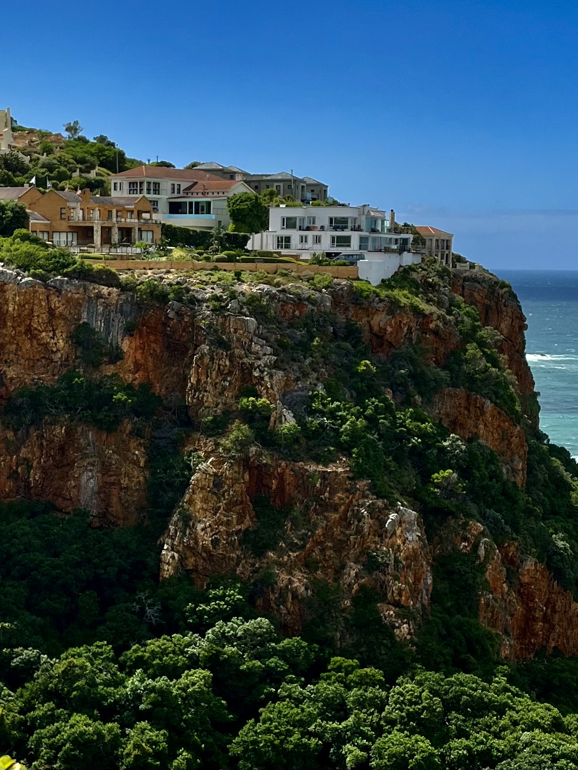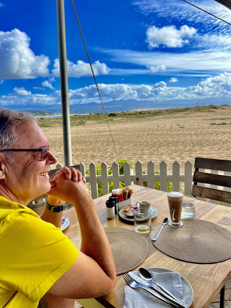 weißen Einwohnern. Es gibt ja nicht mehr viele Weiße in Südafrika, aber hier haben sie sich offensichtlich versammelt. Sogar die Kellner sind hier weiß. Jo, wir sitzen schon wieder in einem Café und trinken Espresso und rote Traubenschorle. ☕️🍷Mit den Weißen ist auch das Geld hier versammelt. Der Kellner unterstreicht das angenehme Leben hier, betont die allgemeine Gelassenheit und das easy going. Man ist gechillt. Angenehm❣️ Dann chillen wir mal wieder runter an den Strand und kraxeln zurück zu unserem Herrenhaus am Meer.