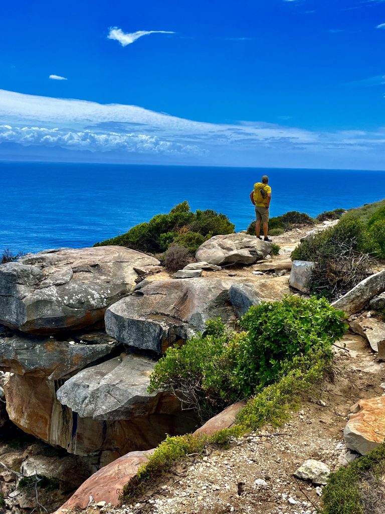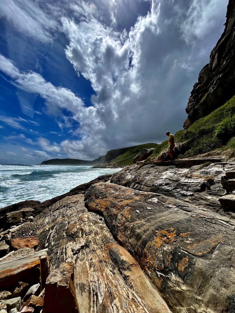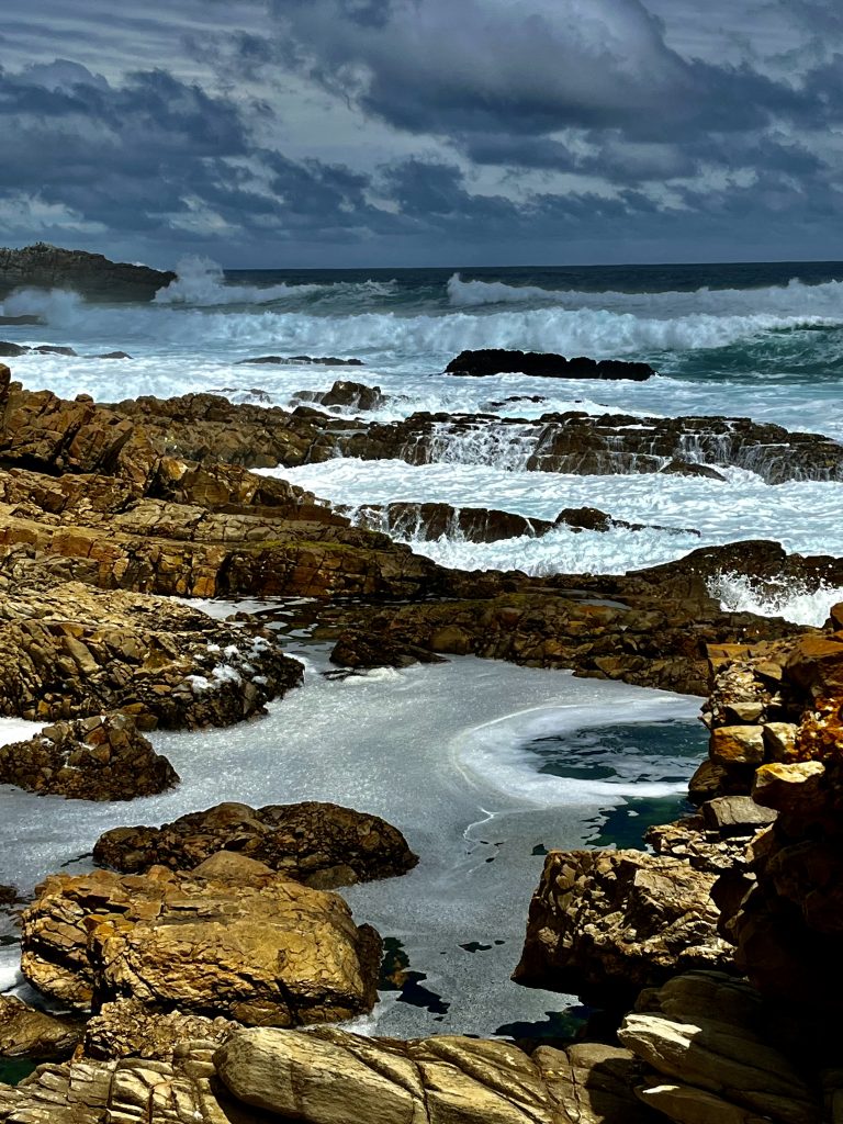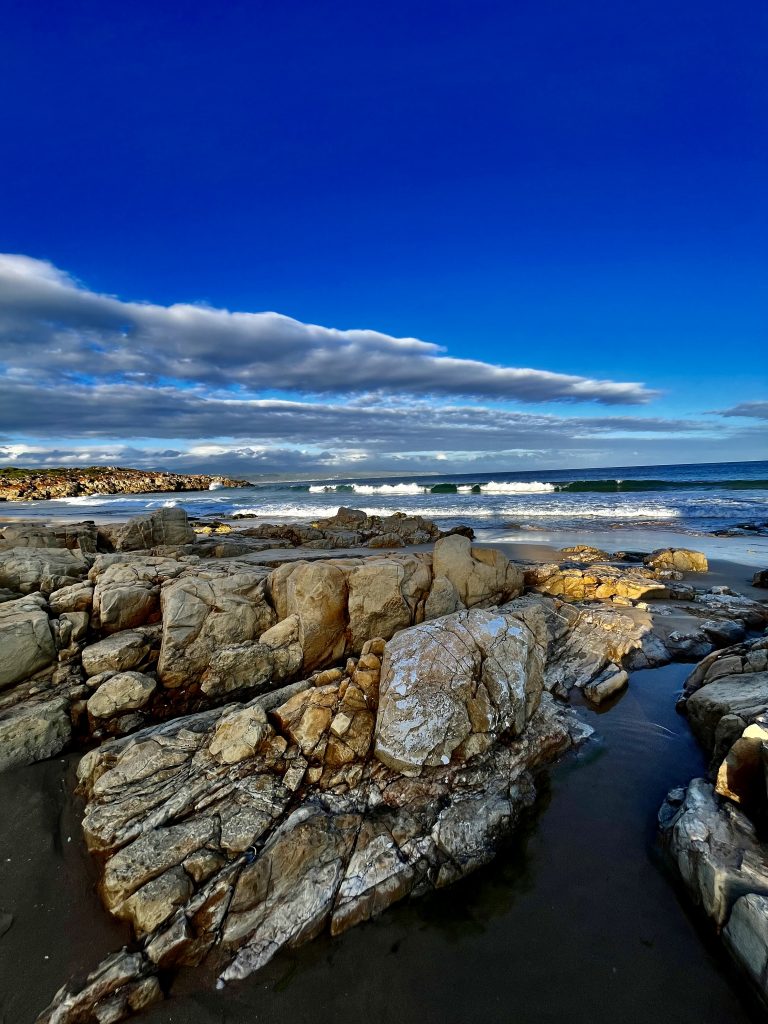 weißen Einwohnern. Es gibt ja nicht mehr viele Weiße in Südafrika, aber hier haben sie sich offensichtlich versammelt. Sogar die Kellner sind hier weiß. Jo, wir sitzen schon wieder in einem Café und trinken Espresso und rote Traubenschorle. ☕️🍷Mit den Weißen ist auch das Geld hier versammelt. Der Kellner unterstreicht das angenehme Leben hier, betont die allgemeine Gelassenheit und das easy going. Man ist gechillt. Angenehm❣️ Dann chillen wir mal wieder runter an den Strand und kraxeln zurück zu unserem Herrenhaus am Meer.