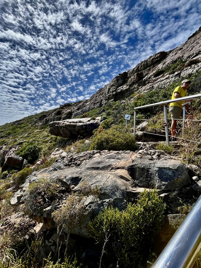 Es ist der 6. Dezember, Nikolaustag. Weihnachtsfeeling? Null Komma null! Heute gibt es einen Ausflug zum Robberg. Dort hat man drei tolle Wanderwege zur Auswahl. Kurz, mittel, lang. Und, was machen wir? Lang natürlich! Das bedeutet 10 km kraxeln, immer an der Küste entlang. Los geht’s.